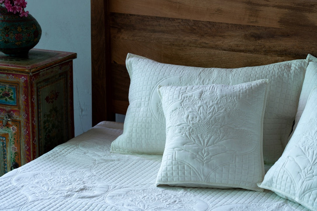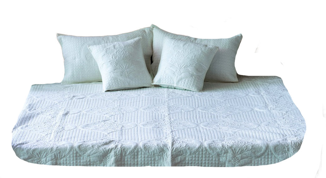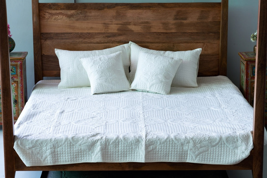 This bed cover set made of 100% unbleached natural cotton is richly embroidered, with 2 small and 2 large pillowcases.