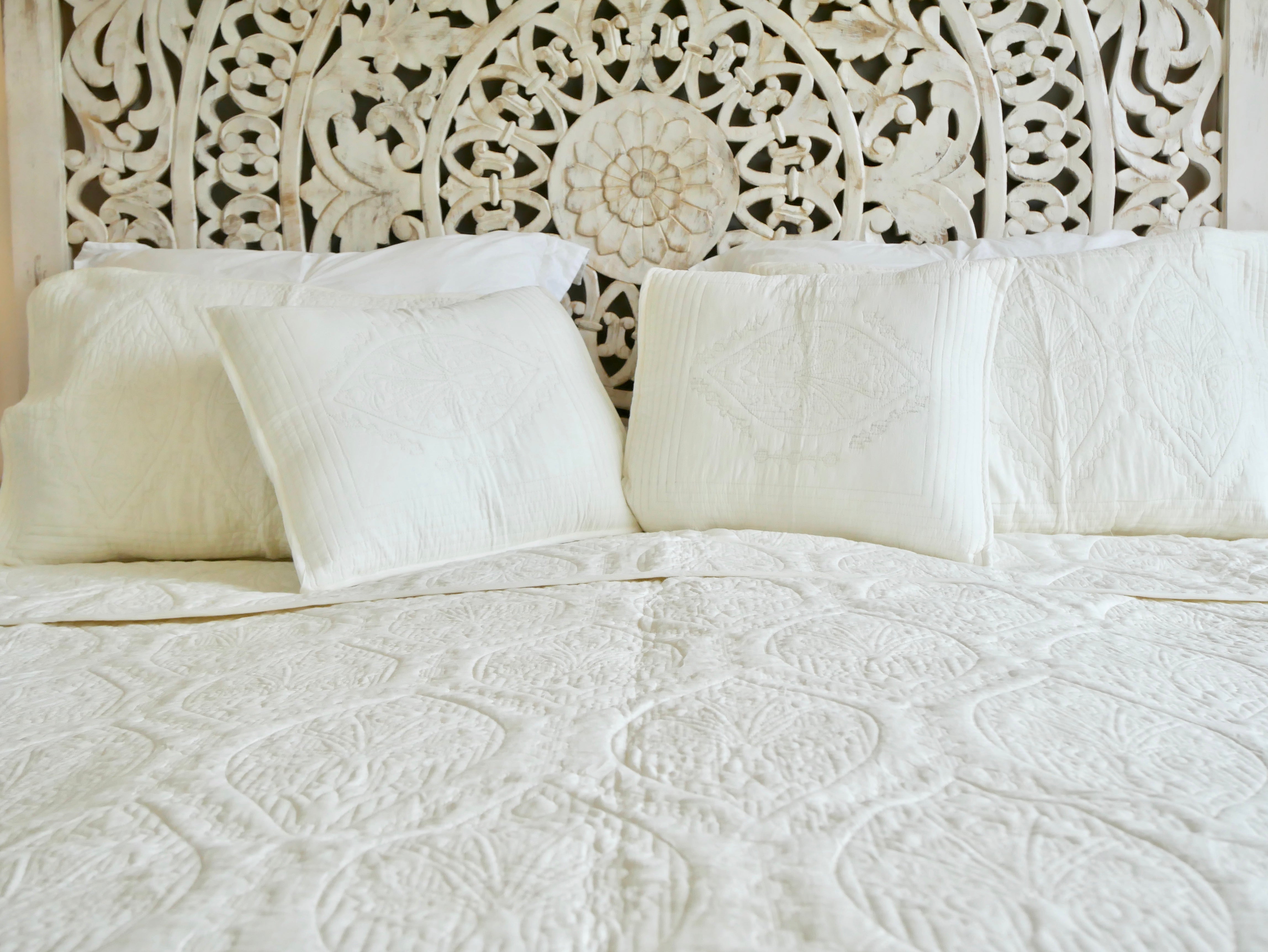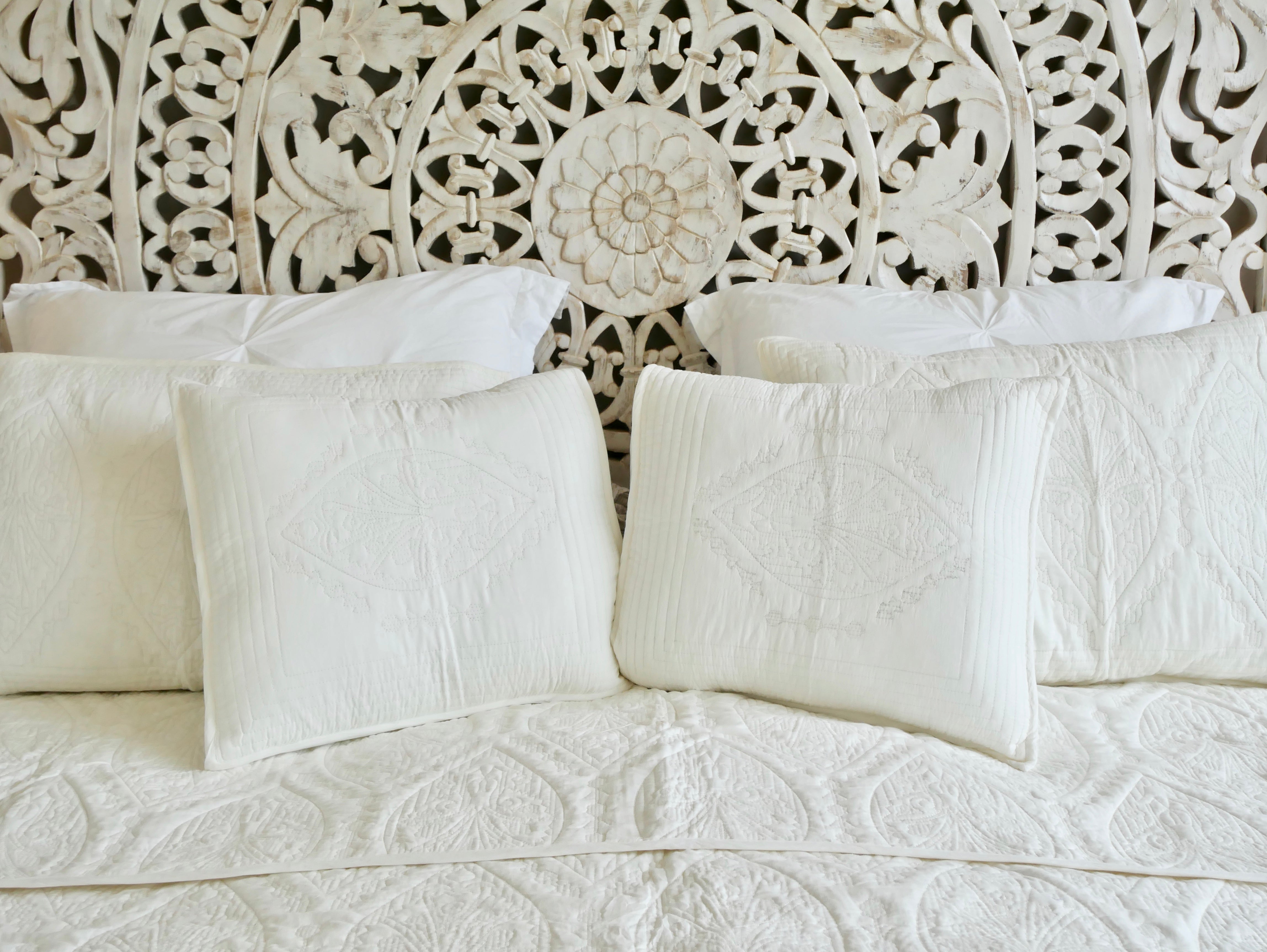 This bed cover made of 100% unbleached natural cotton is richly embroidered. It comes with 2 small and 2 large pillowcases and brings pure luxury to your bedroom or as a sofa cover to your living room