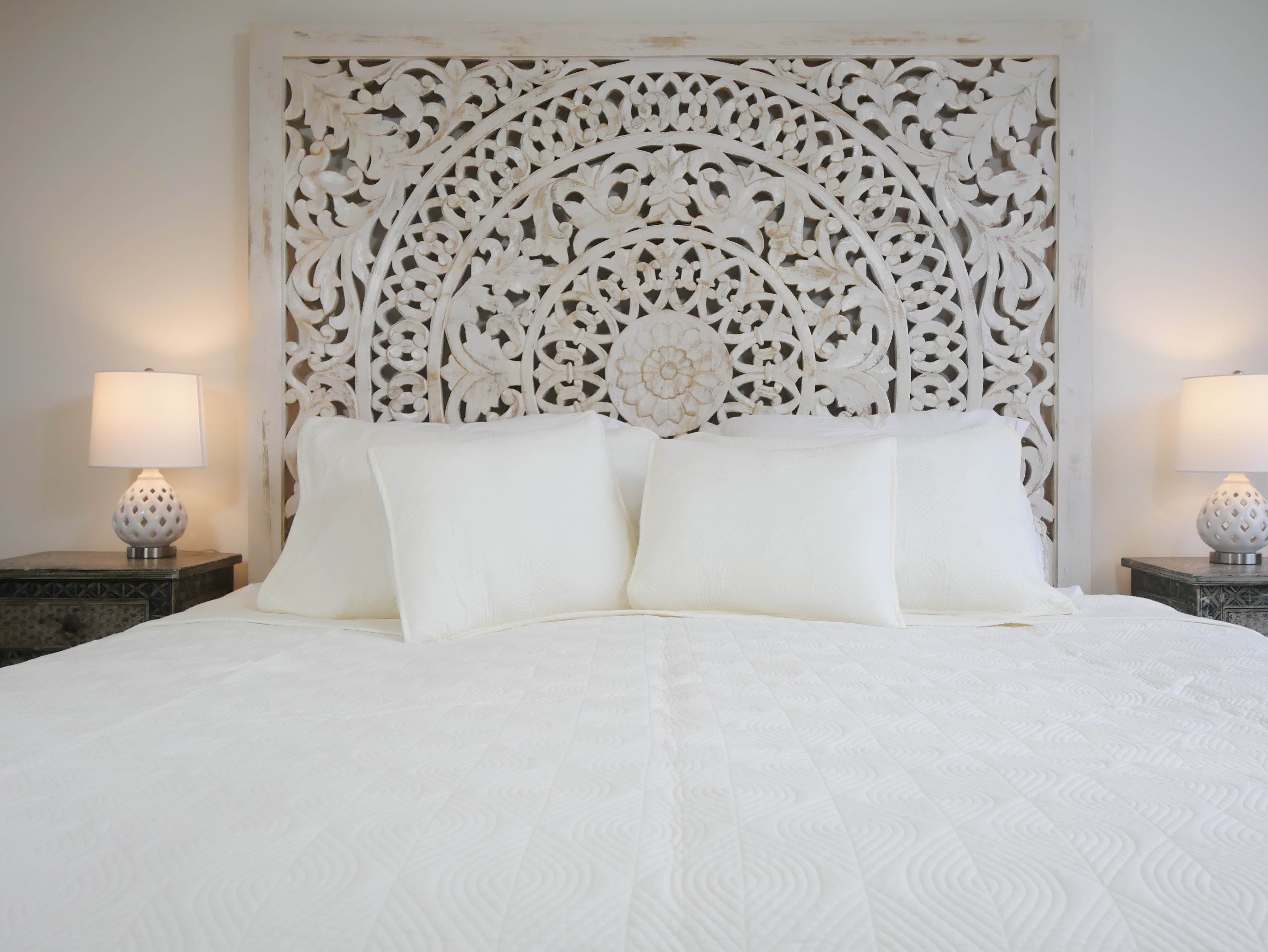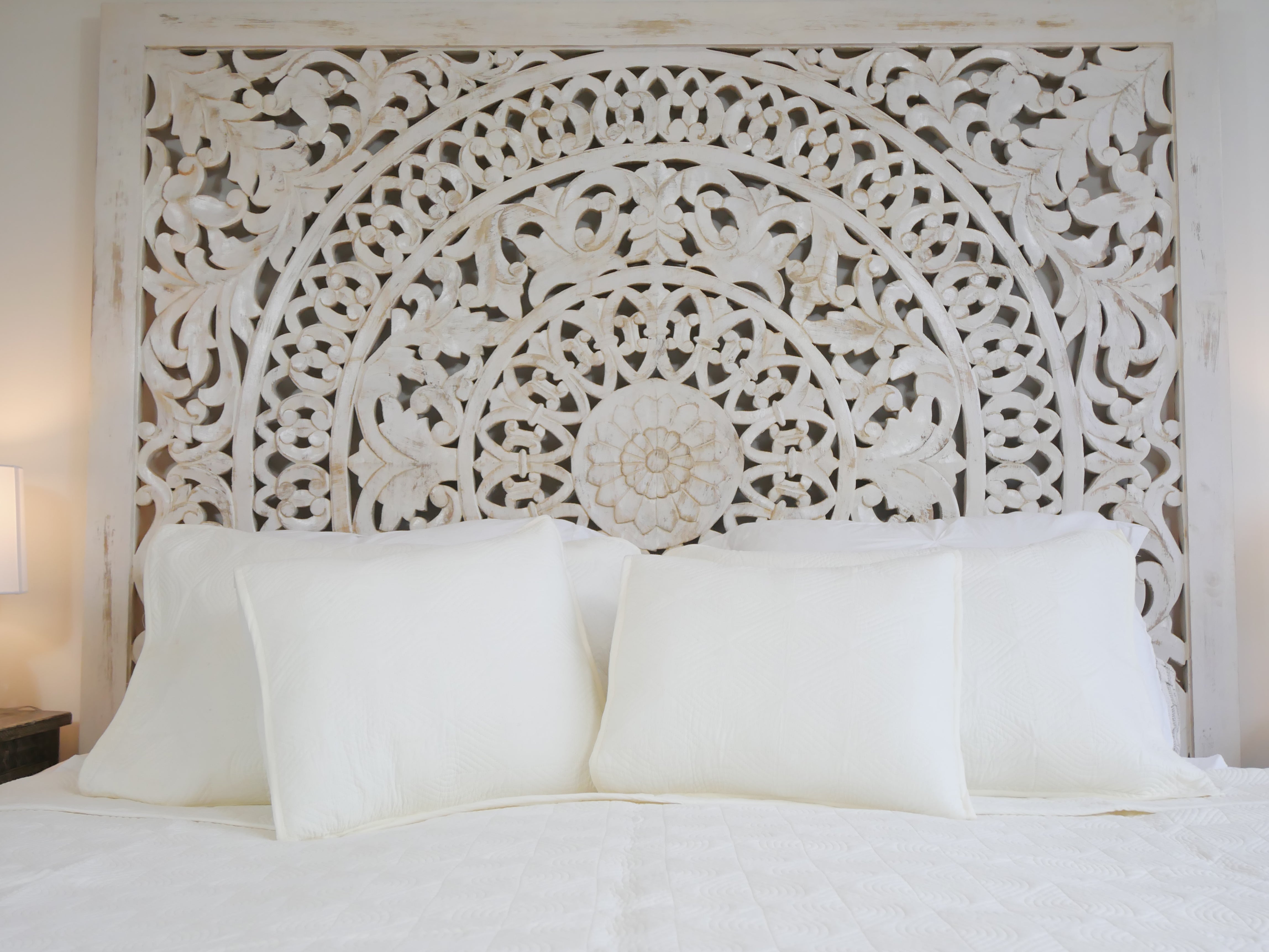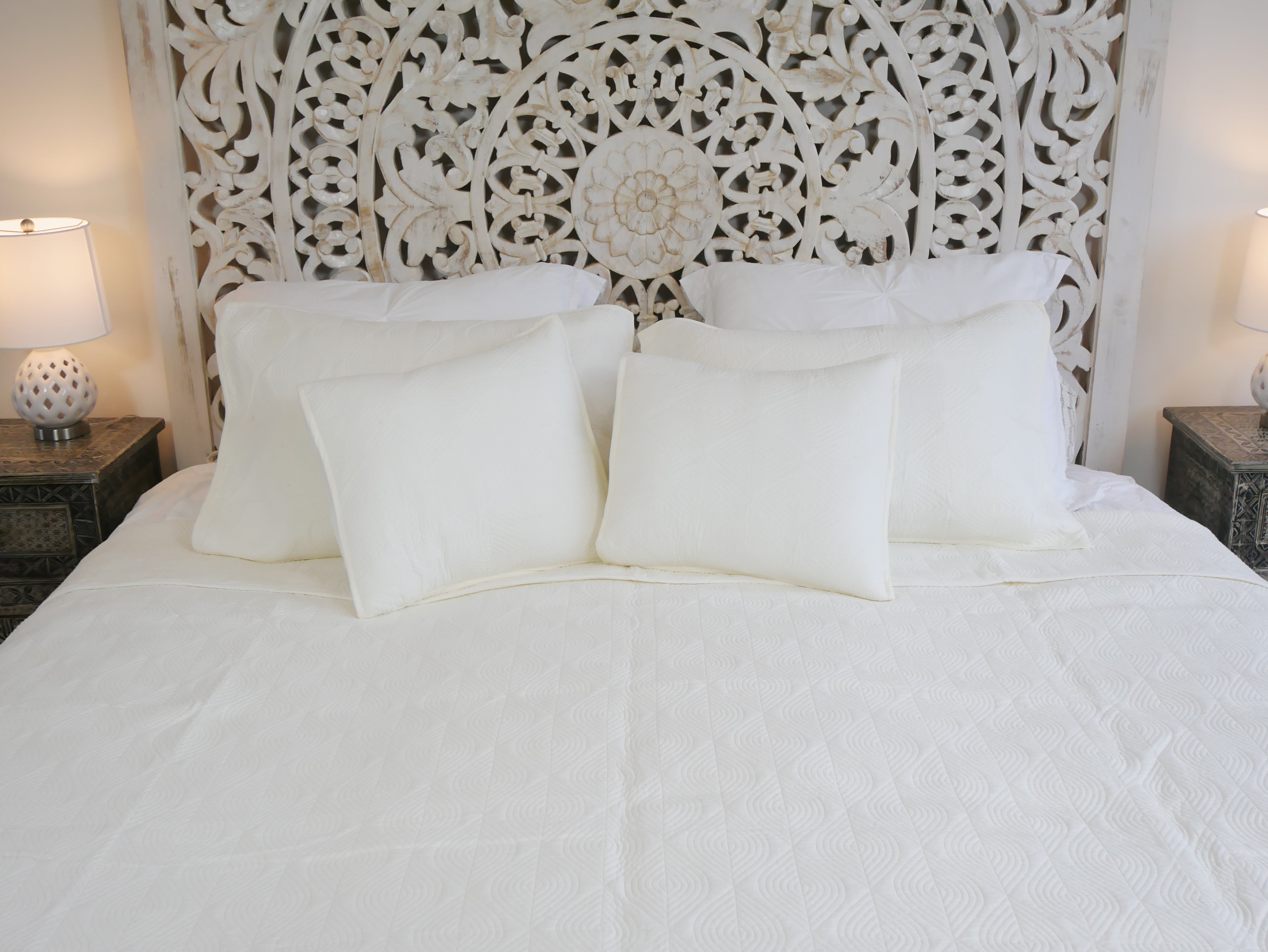 This bed cover, made of 100% unbleached natural cotton and richly embroidered, with 2 small and 2 large pillowcases, brings pure luxury to your bedroom or as a sofa cover to your living room.