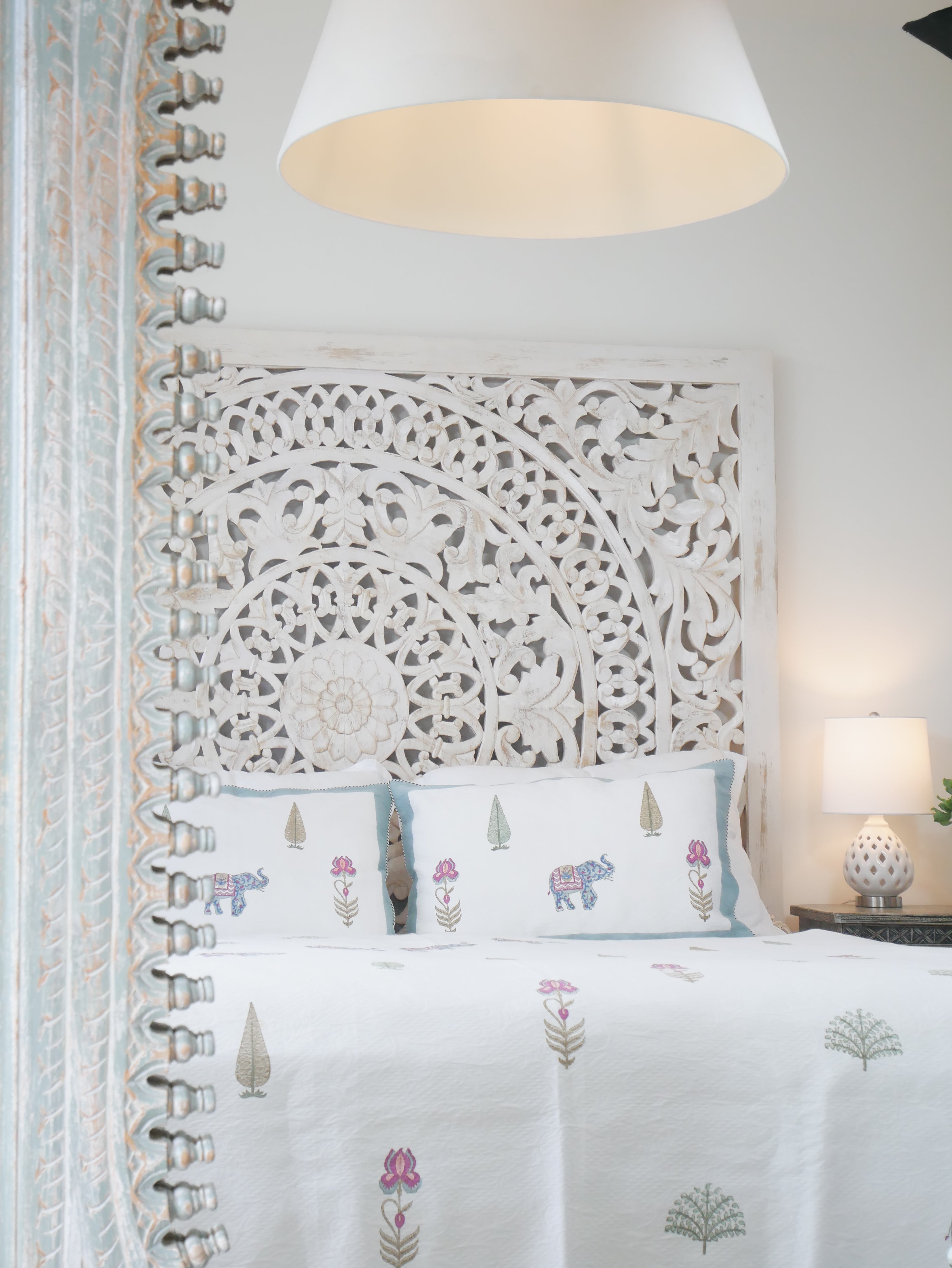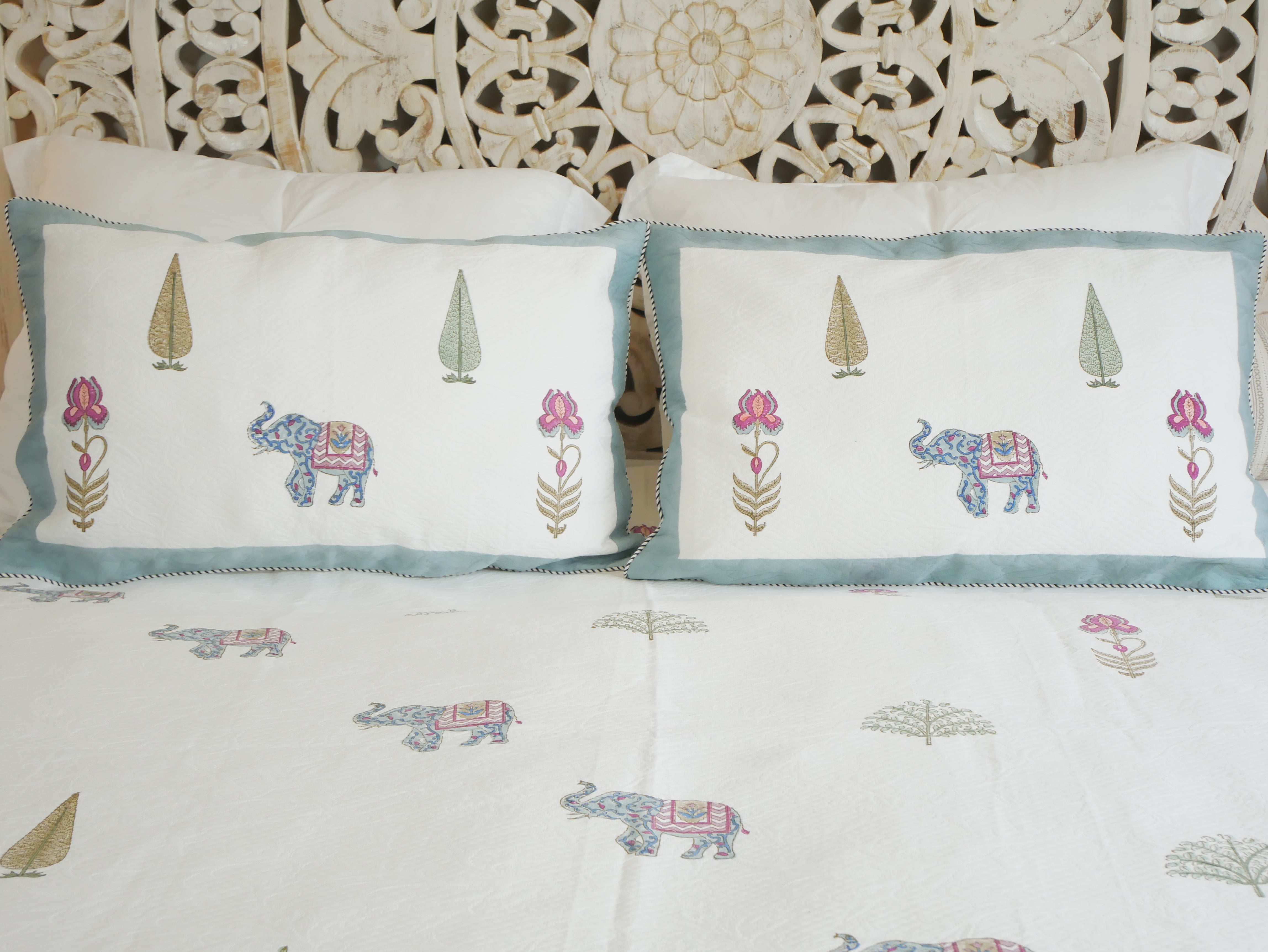 This luxurious bed set consisting of a large duvet and 2 pillowcases is elaborately handcrafted and the pattern is applied by means of block printing.
