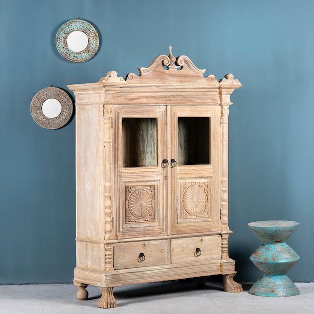 This showcase combines traditional craftsmanship with modern styling, making it an ideal choice for those who value unique furniture with a story.