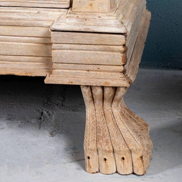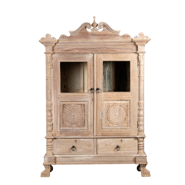 Add a statement of elegance and craftsmanship to your home with this exquisite refurbished teak wood showcase. The sandblasted finish enhances the natural grains of the teak wood, while its unique leg design and Ibiza-style aesthetic bring an artistic flair to any space.