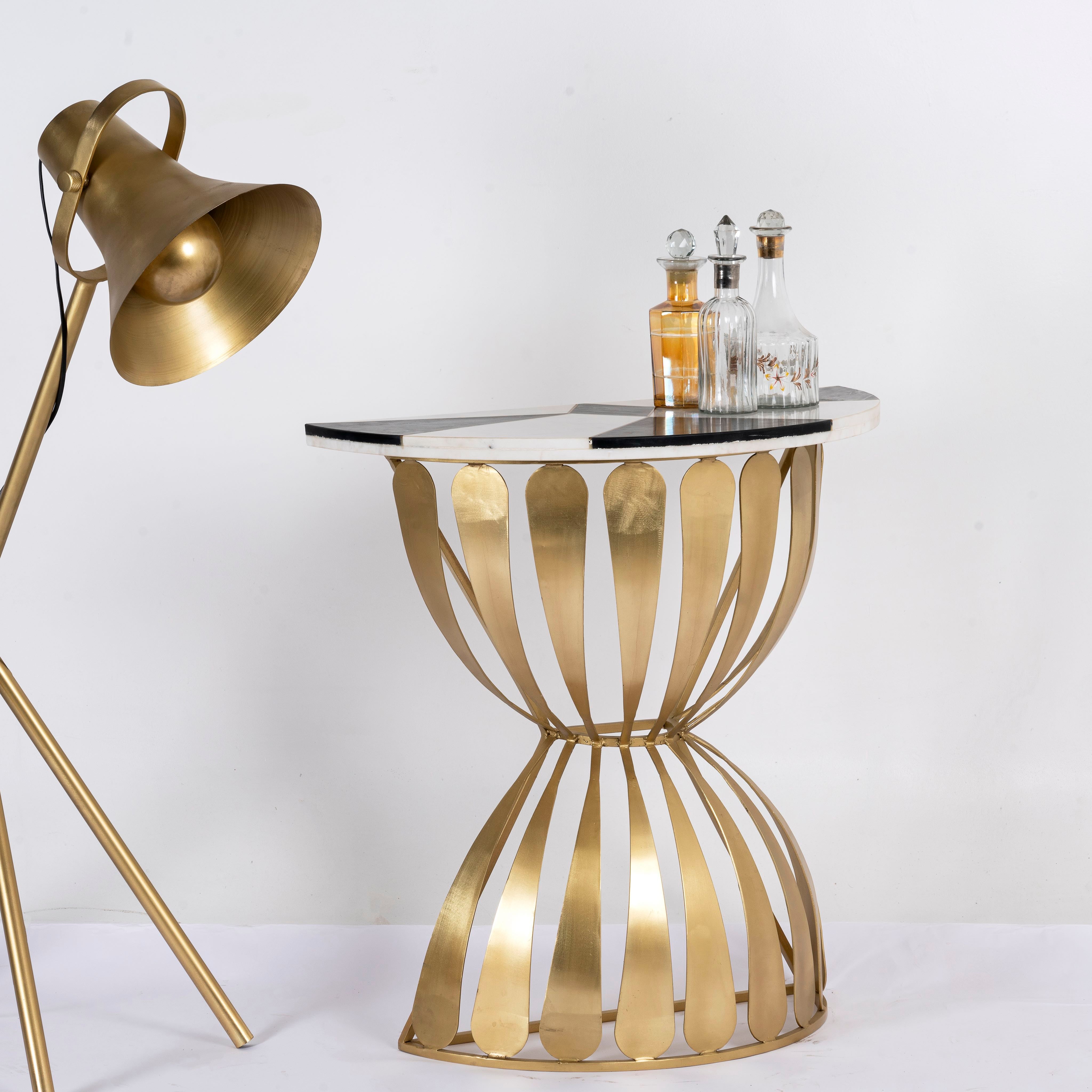Discover the perfect combination of artistic craftsmanship and functional design with our forged, semi-circular wall console table Parijata. This impressive console has been carefully designed to be both aesthetically pleasing and practical, making it an ideal addition to any stylish home.