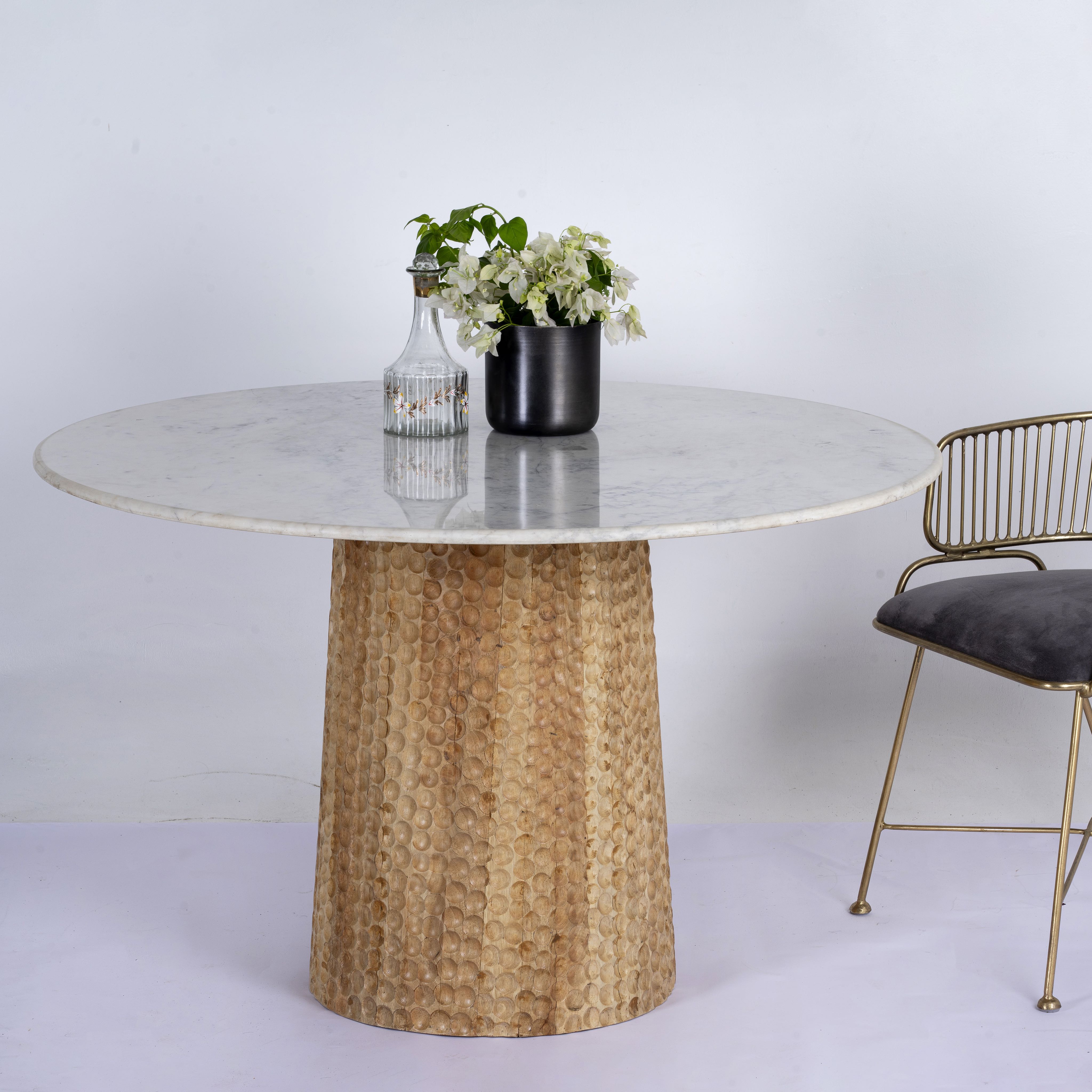 Manomay- Solid Wood Dining Table With Marble Top Dia 120cm