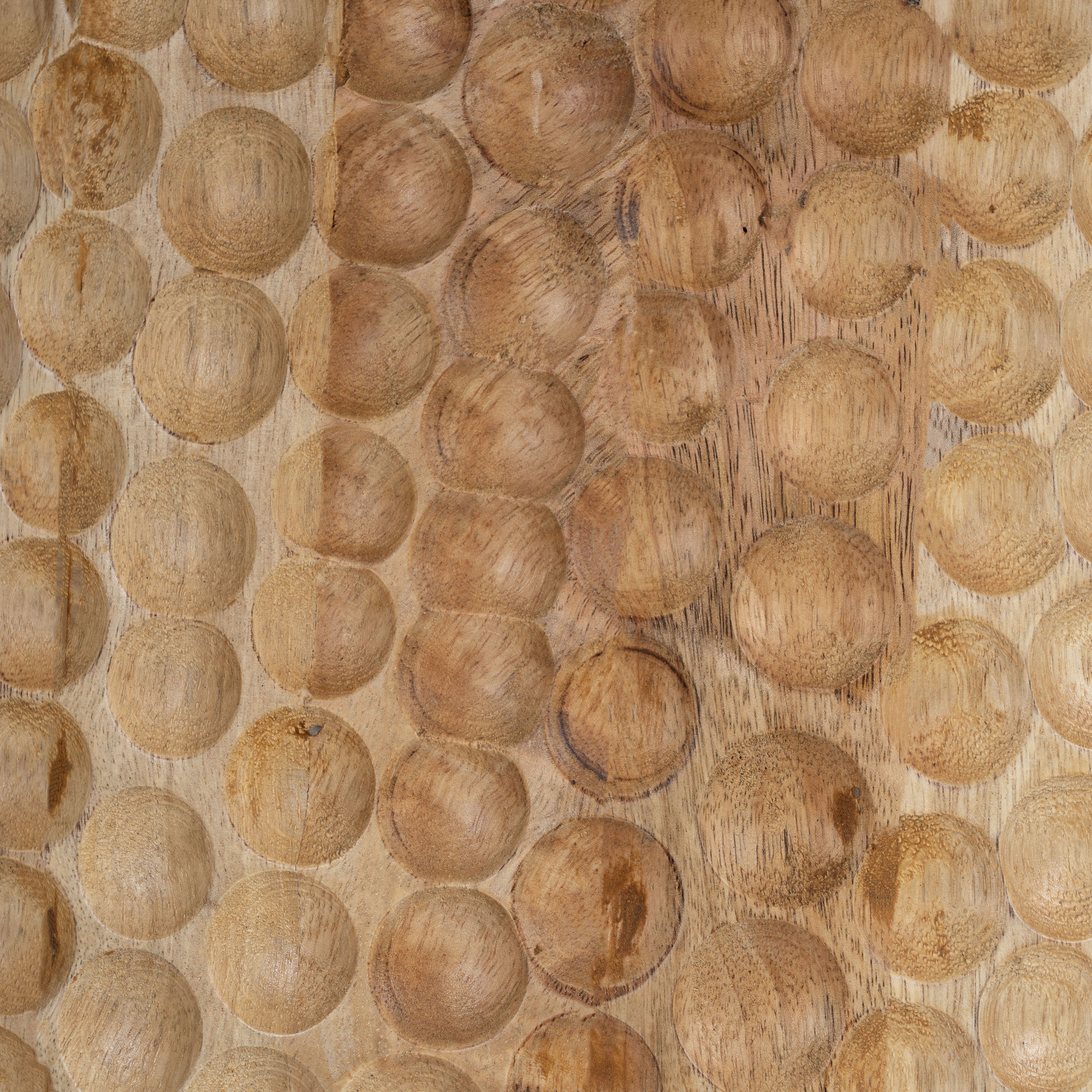 The handmade base is crafted from premium solid mango wood, with each strip individually cut and carefully assembled into an intricate layered design. This meticulous detailing highlights the artisan’s skill, while the natural wood finish adds depth, richness, and character.