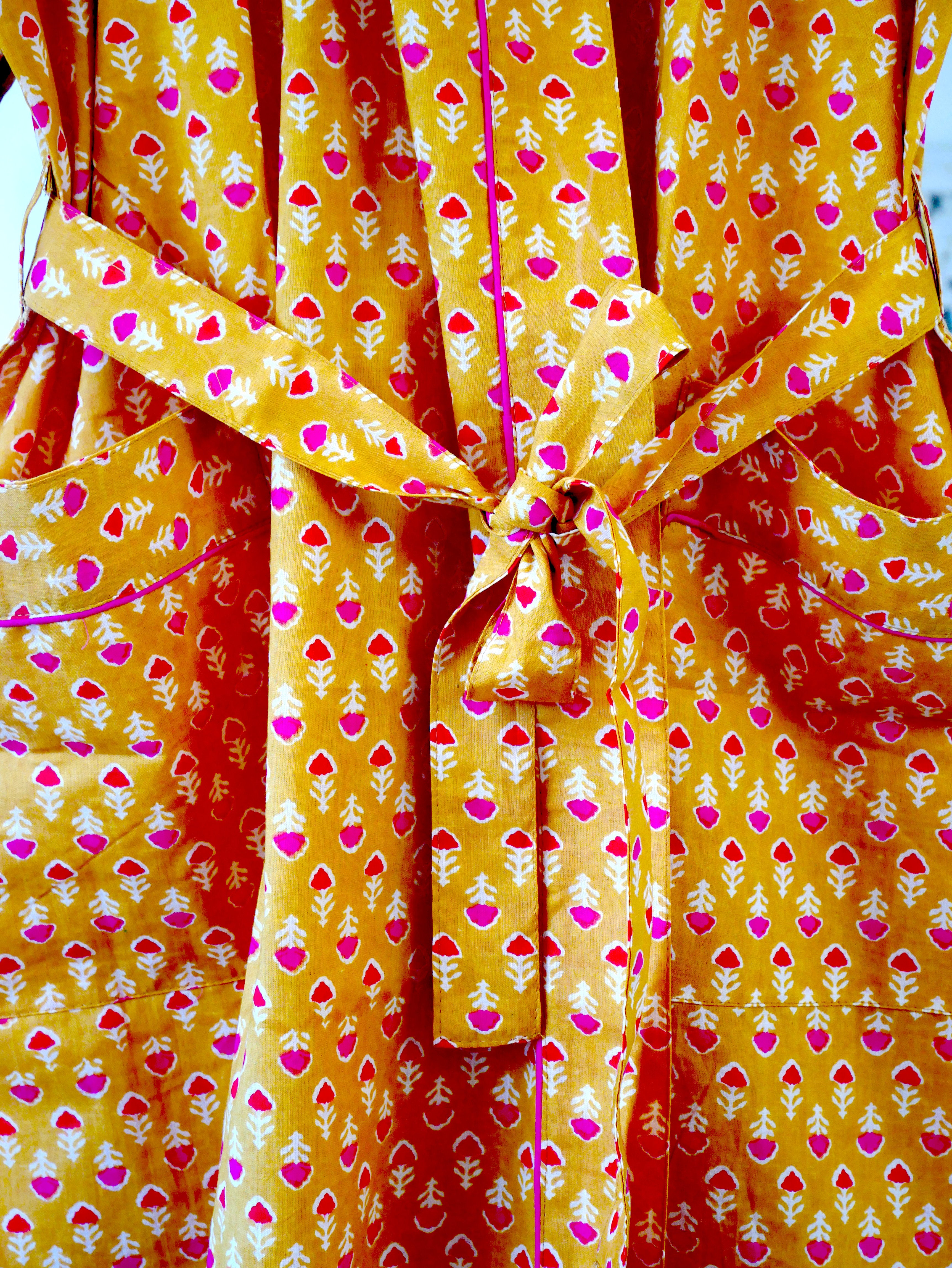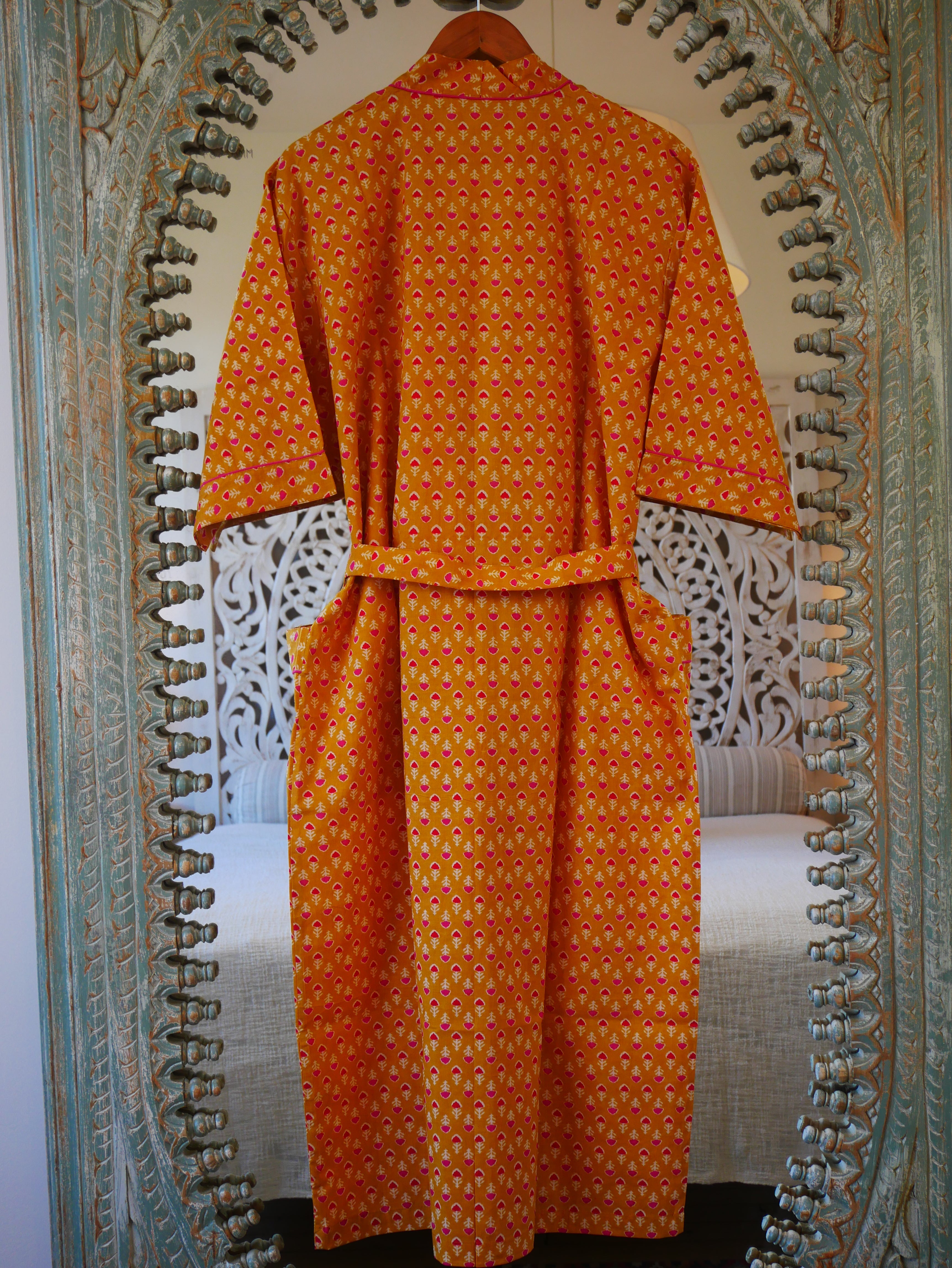 Wrap yourself in the vibrant beauty of our morning robes, sourced directly from India and crafted from 100% cotton. Each robe boasts a variety of colors and designs, blending traditional Rajasthani patterns with modern floral motifs. These robes are not just a testament to exceptional craftsmanship but also a celebration of cultural heritage and contemporary style. Ideal for lounging or adding an exotic touch to your morning routine, our robes promise comfort and elegance in every thread.