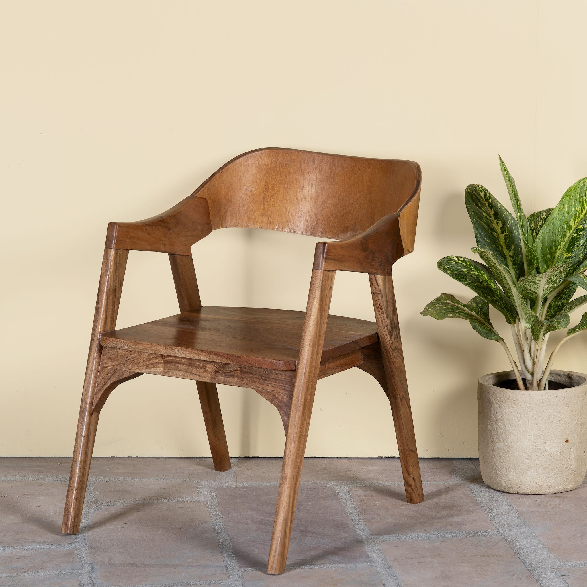 A refined acacia wood chair that blends natural beauty with functionality, this wooden armchair is a versatile piece that elevates any interior.