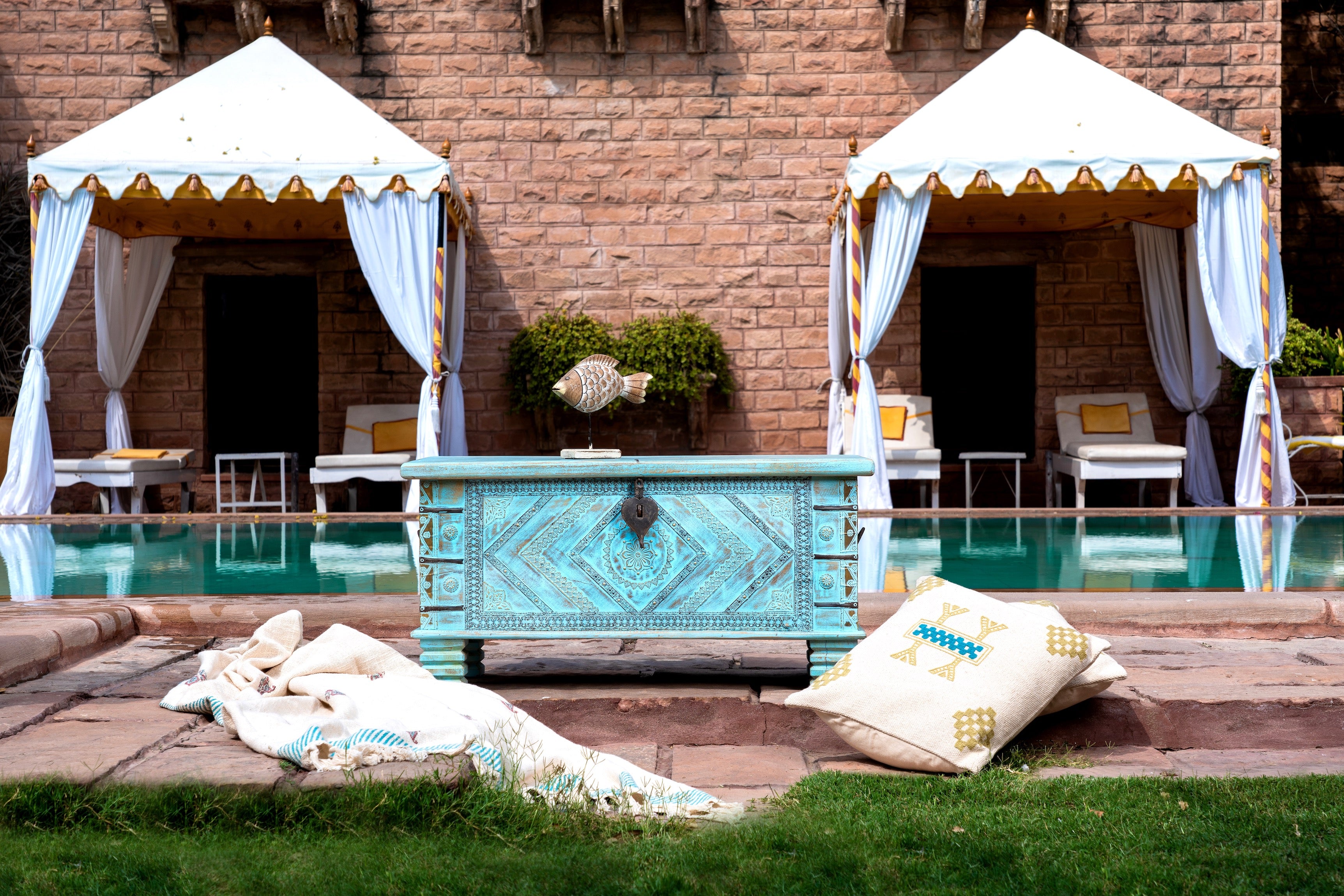 Mandavai - Hand Carved Blue Mango Wood Box with Iron Fittings