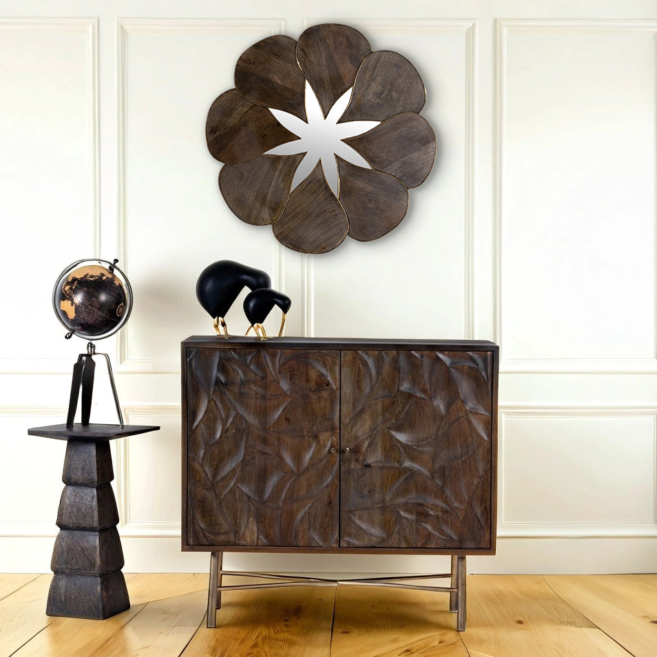 Introducing our exquisitely designed wall mirror Aeindri, a harmonious blend of natural beauty and refined craftsmanship. This mirror is made of natural Mango wood, celebrated for its durability and rich, organic texture. The frame is adorned with a handcrafted flower design, meticulously carved by skilled artisans. Each floral motif showcases intricate detailing, bringing a touch of elegance and artistry to the piece.