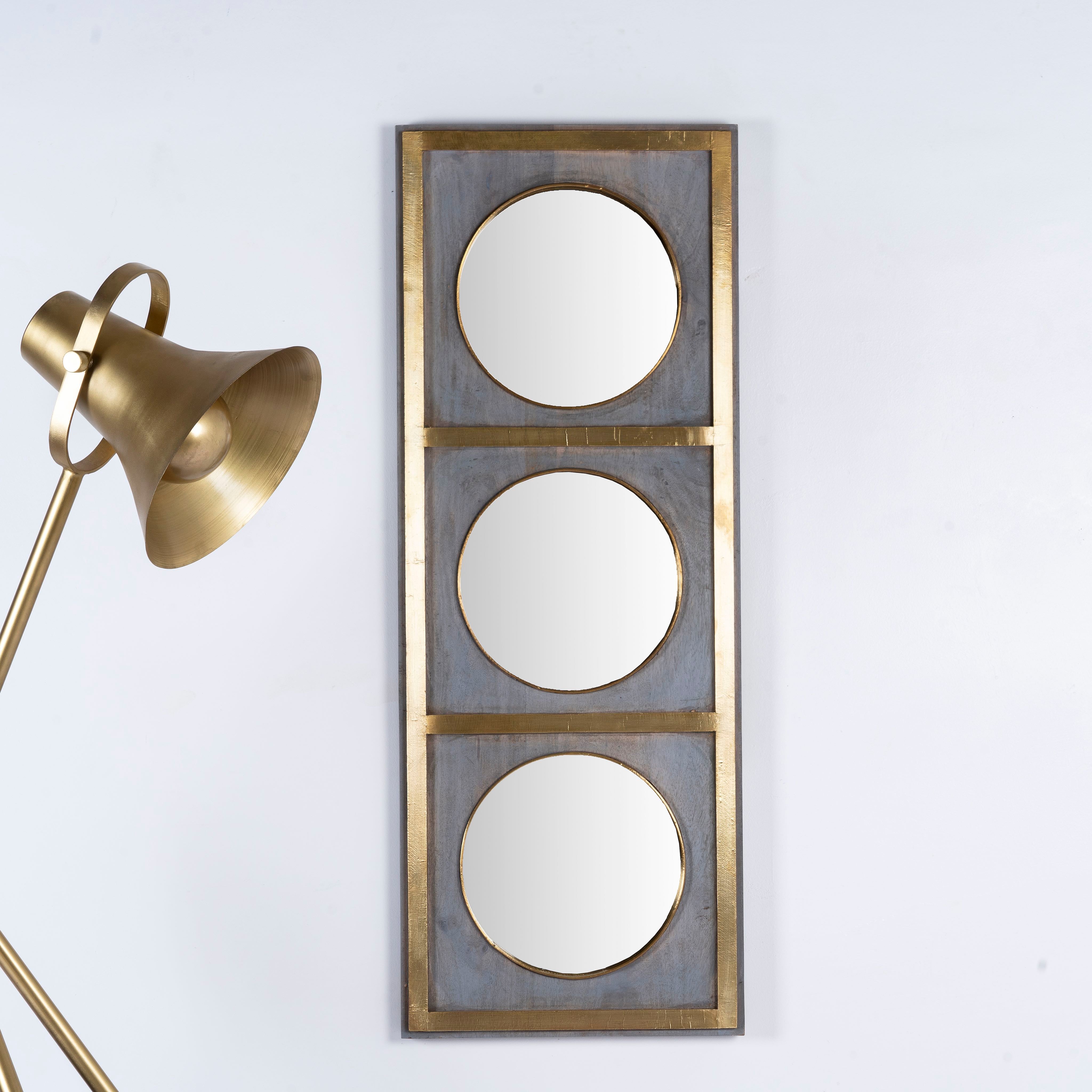 - Unique design with three circular mirrors within a rectangular frame