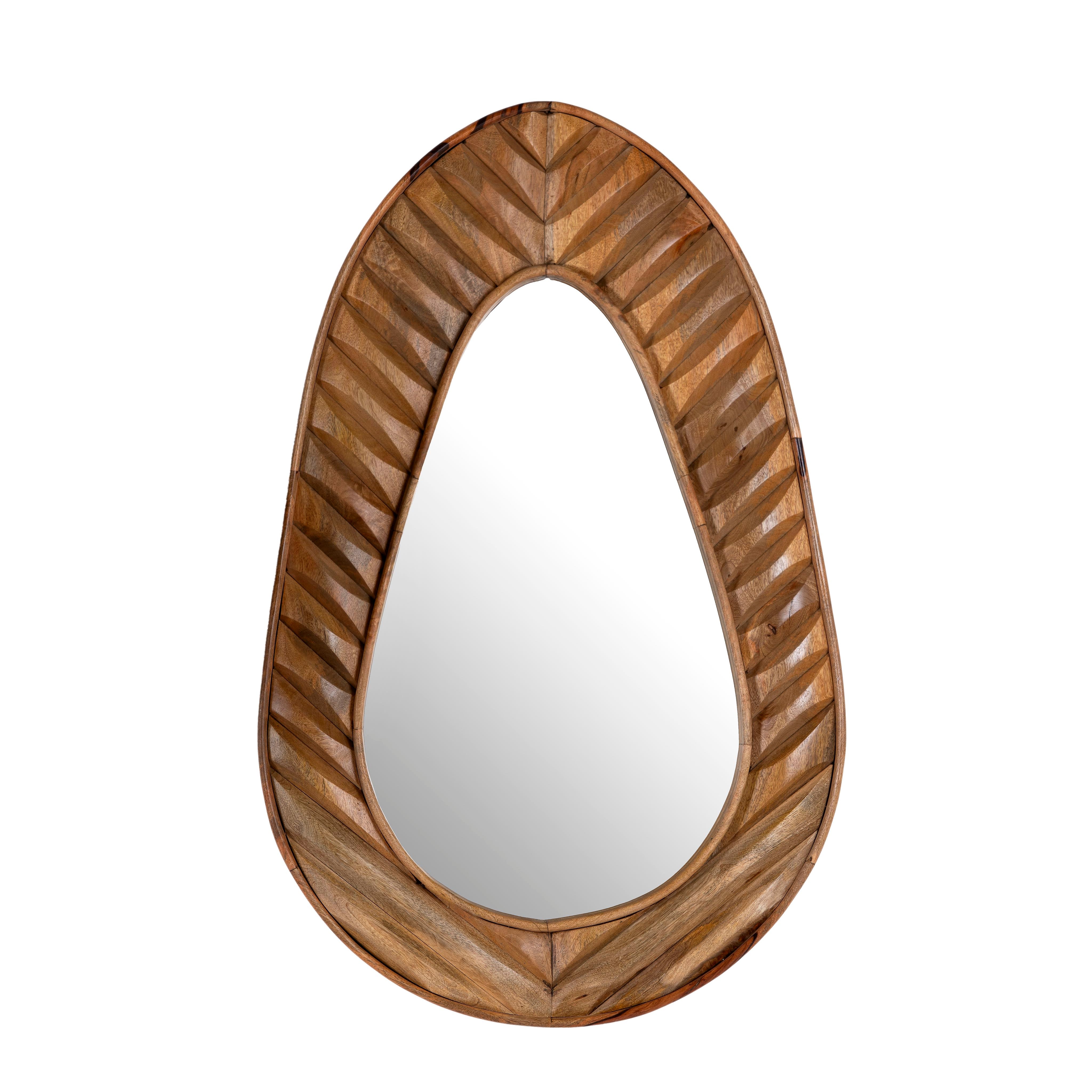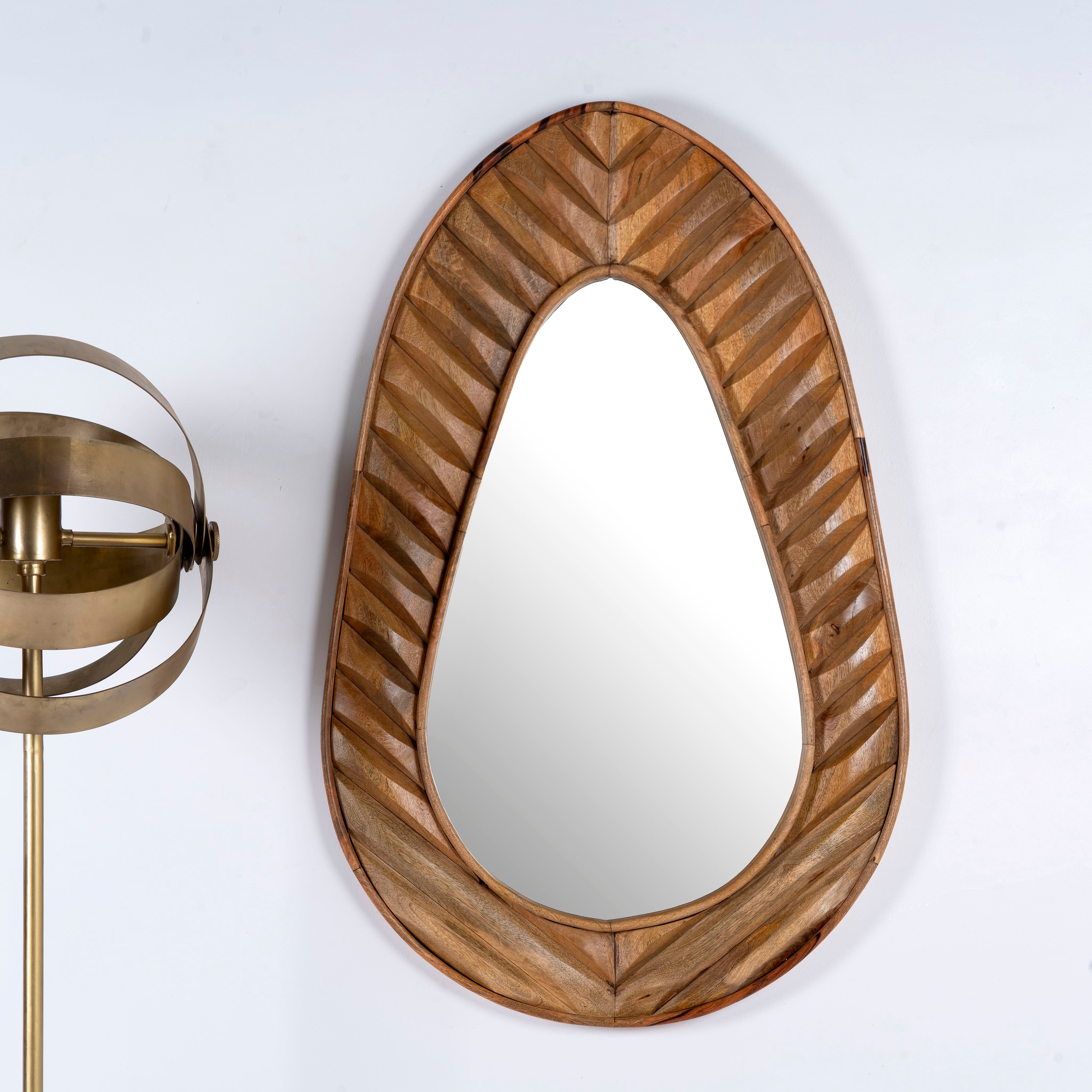 This stylish mirror Jaithra showcases an elevated chevron design, meticulously handcrafted from natural mango wood. Its intricate detailing and organic texture bring a sense of artisanal craftsmanship to your living space.