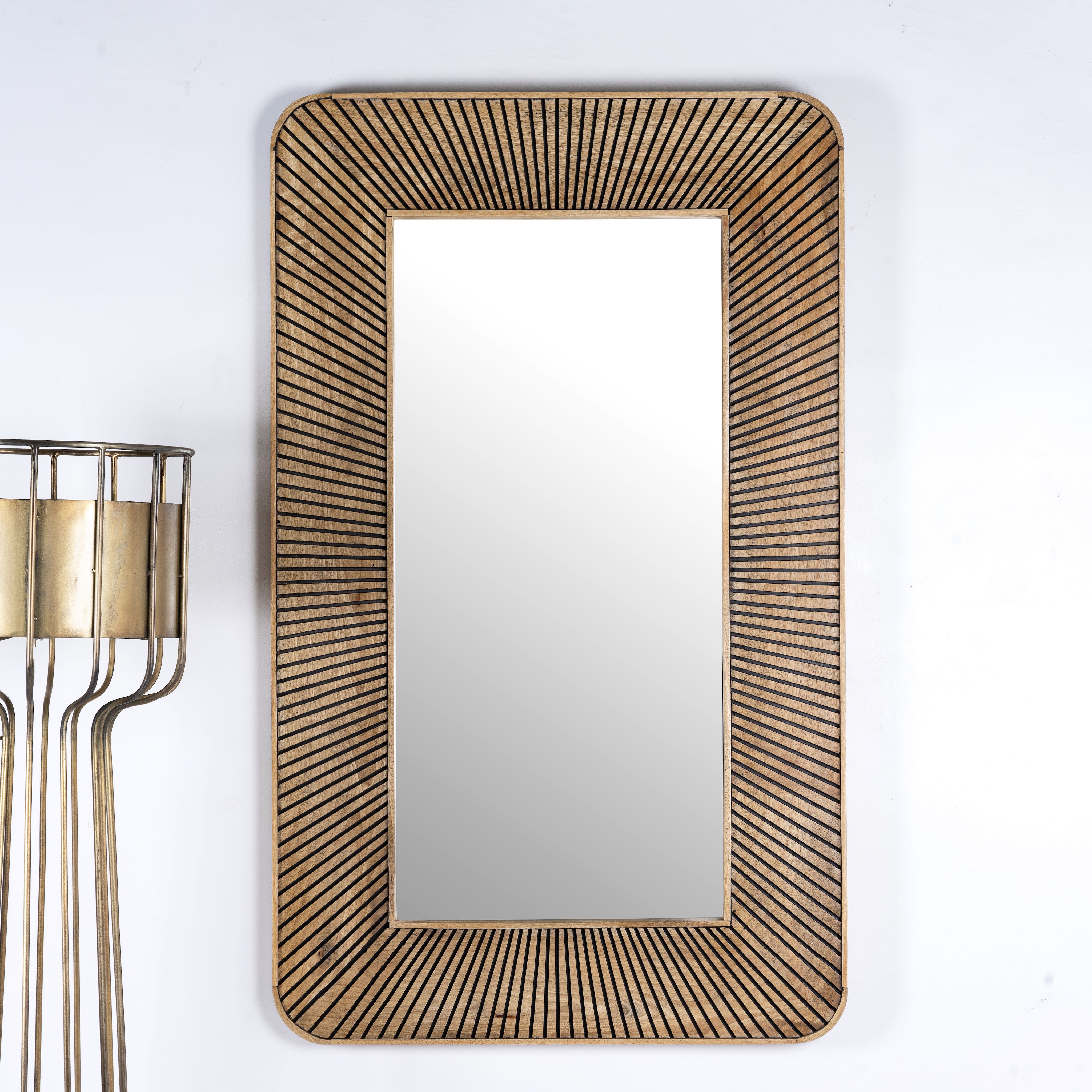 This rectangular mirror featuring a Zarri-cut will enchant any room with its extraordinary design. The natural mango wood color beautifully contrasts with the charred black accents.