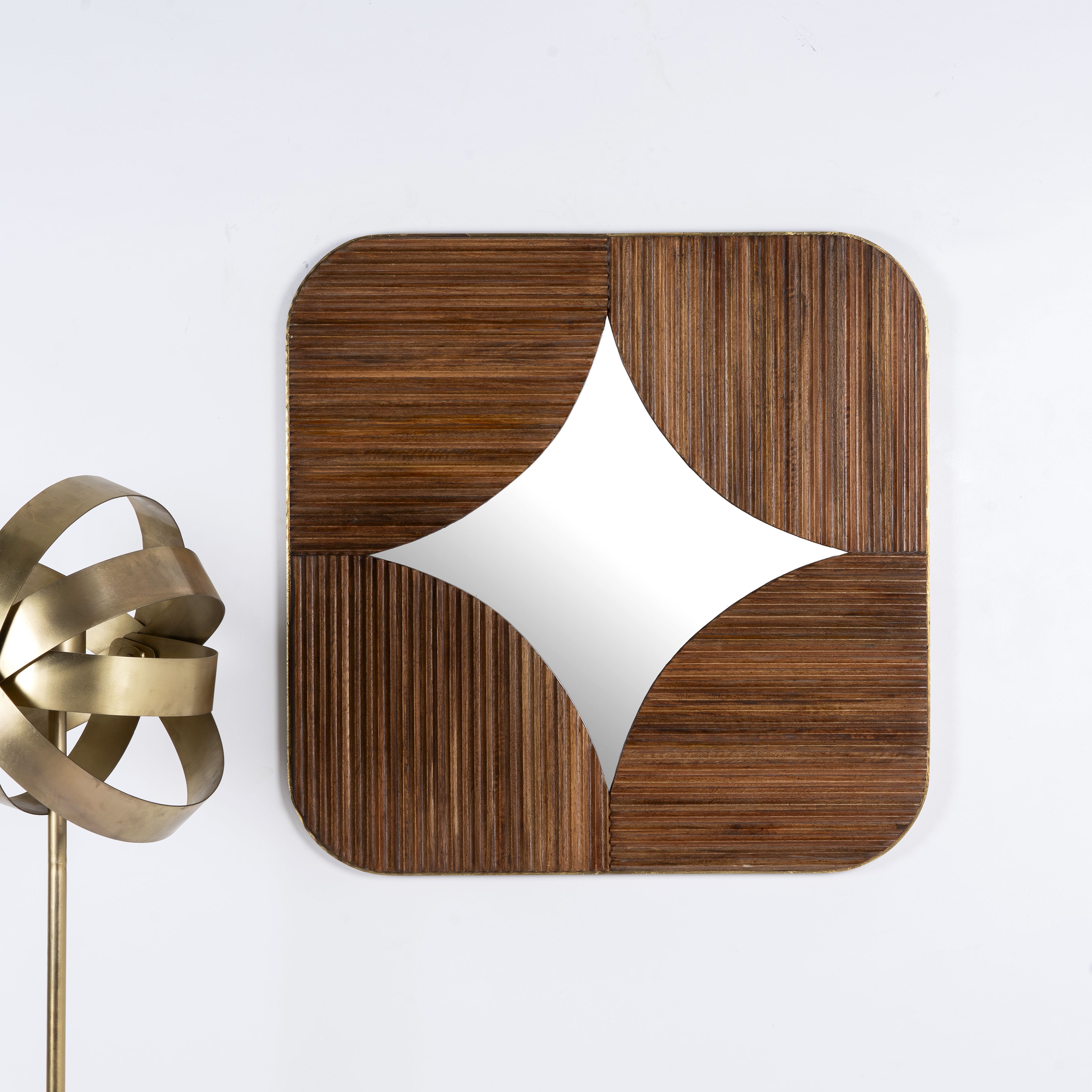 Meet our beautiful large designer mirror Mahadhyuta, a real statement piece made from high-quality mango wood. This elegant mirror comes in brown finish, highlighting the natural wood grain and adding a touch of contemporary charm. The focal point of this design is the striped curved pattern.