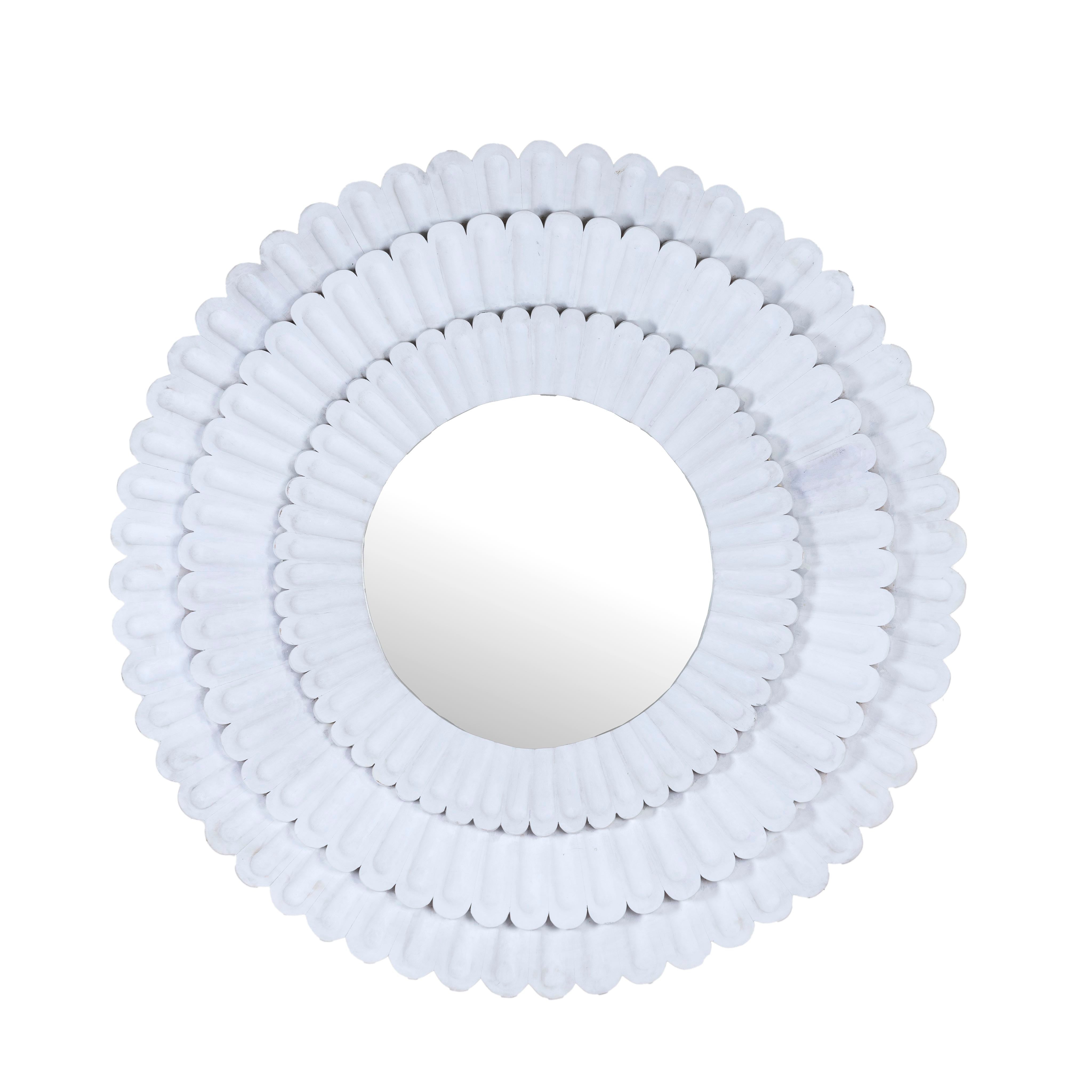 Add a touch of timeless elegance to your home with this whitewashed 3 layer designer mirror with cut-out flowers. Handmade from natural mango wood, this mirror exudes a rustic charm and demonstrates exquisite craftsmanship.