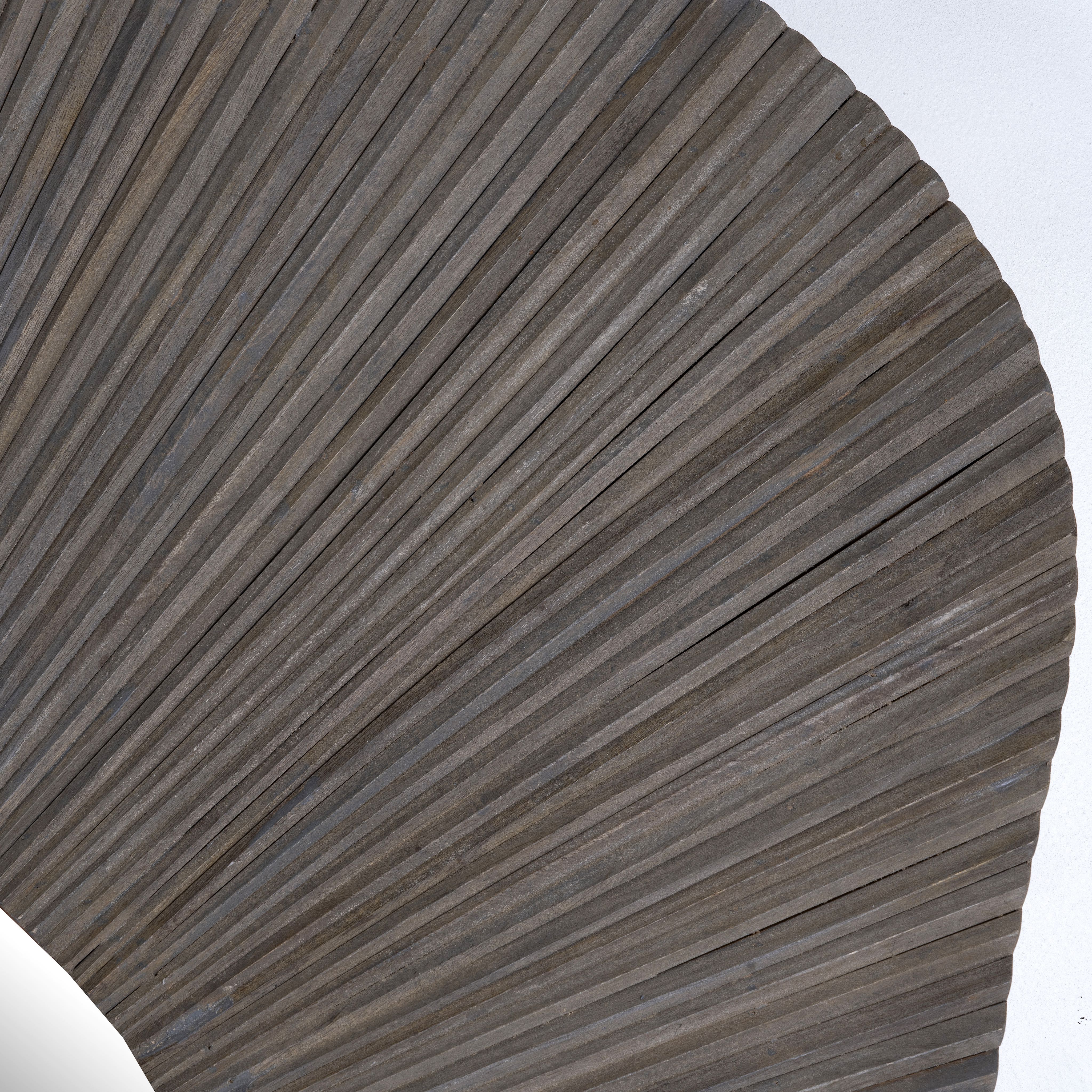 The wavy sunburst design is carefully carved and showcases the artisan's attention to detail and craftsmanship. Each wave flows seamlessly into the next, creating a dynamic and striking effect that is both modern and timeless. The grey wash provides a versatile and neutral tone, making it an ideal addition to various interior styles, from coastal chic to urban modern.