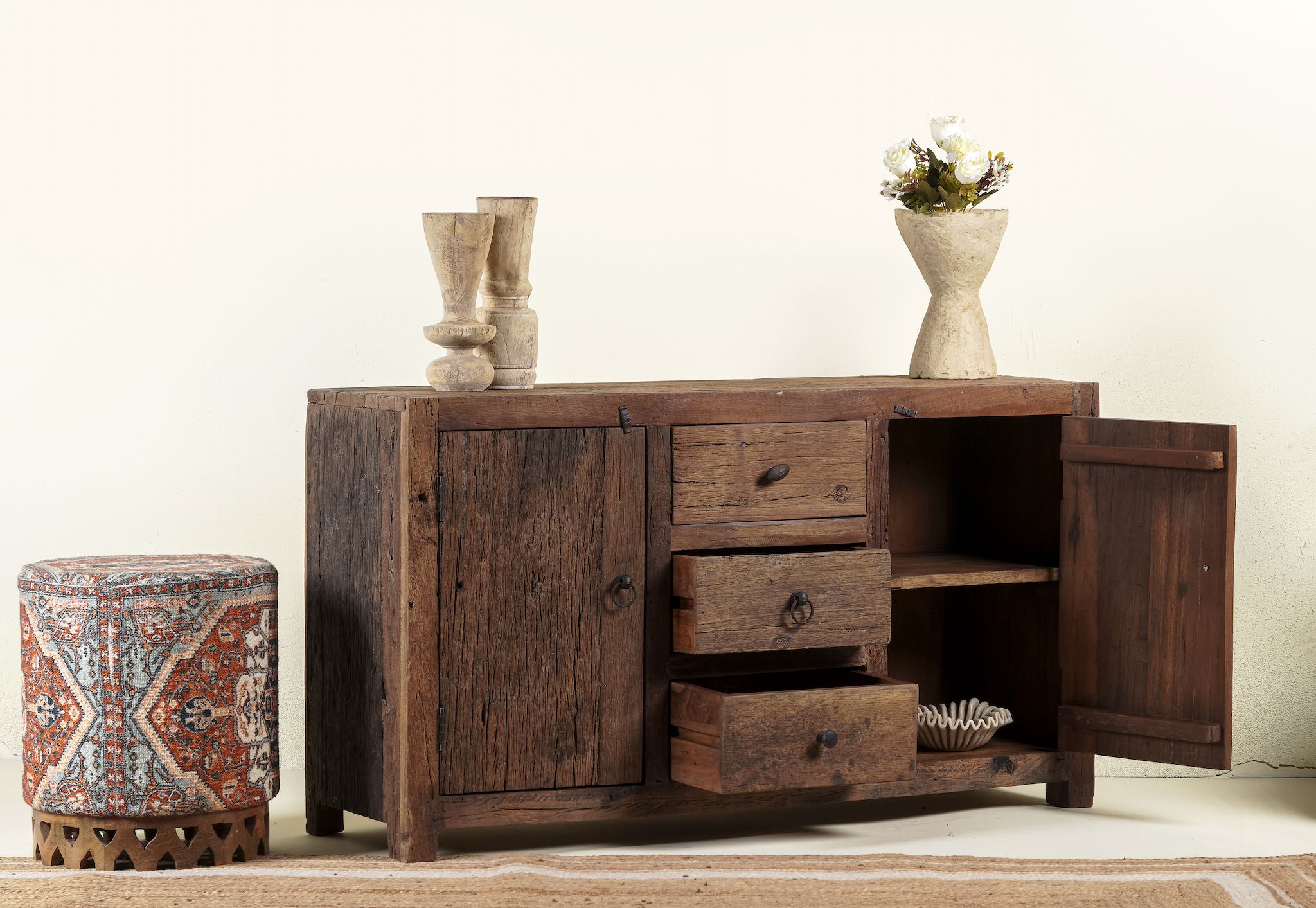 • Eco-Friendly Craftsmanship – Made from reclaimed old wood, this sideboard highlights sustainable living while showcasing the natural beauty of aged wood.