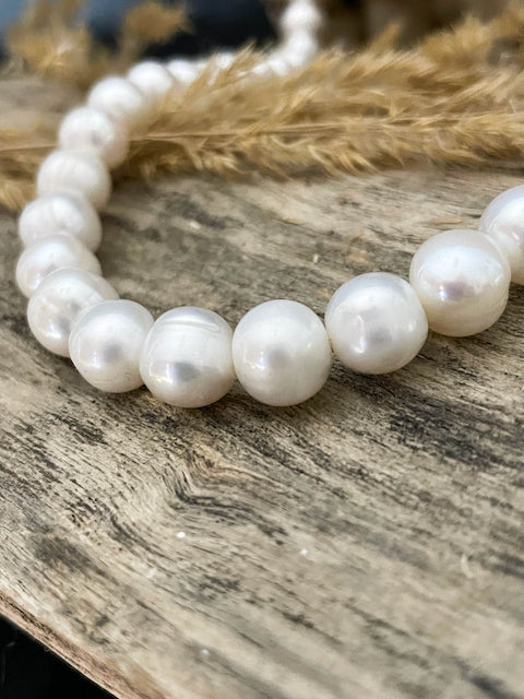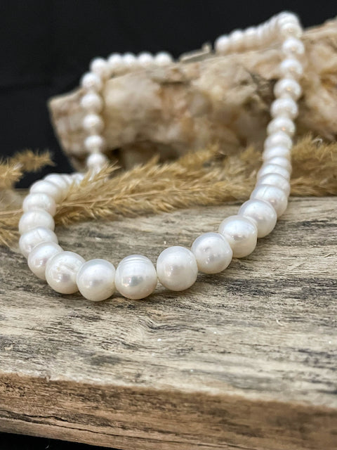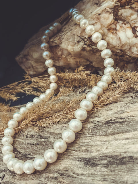 Each pearl is carefully selected and strung, creating a symphony of soft radiance that graces the collar with timeless grace. The necklace is secured with a tasteful silver clasp, adding a touch of contemporary sophistication to the traditional charm of pearls. Perfect for formal events or adding a sophisticated sparkle to everyday wear, this pearl necklace is a testament to enduring style and quality.