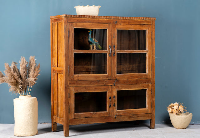 Discover the timeless beauty of our recycled, classic Indian teak wood display cabinet Anjar.