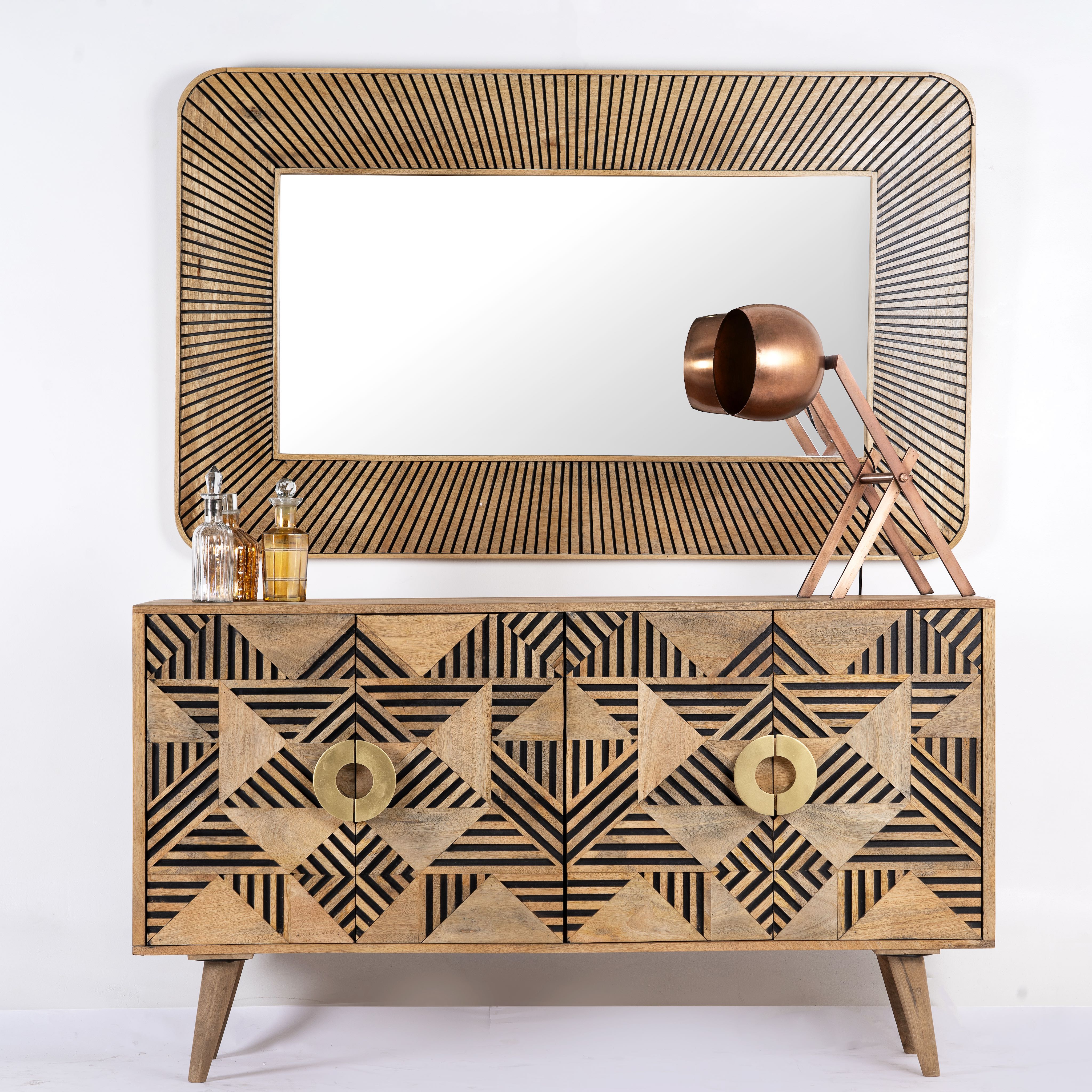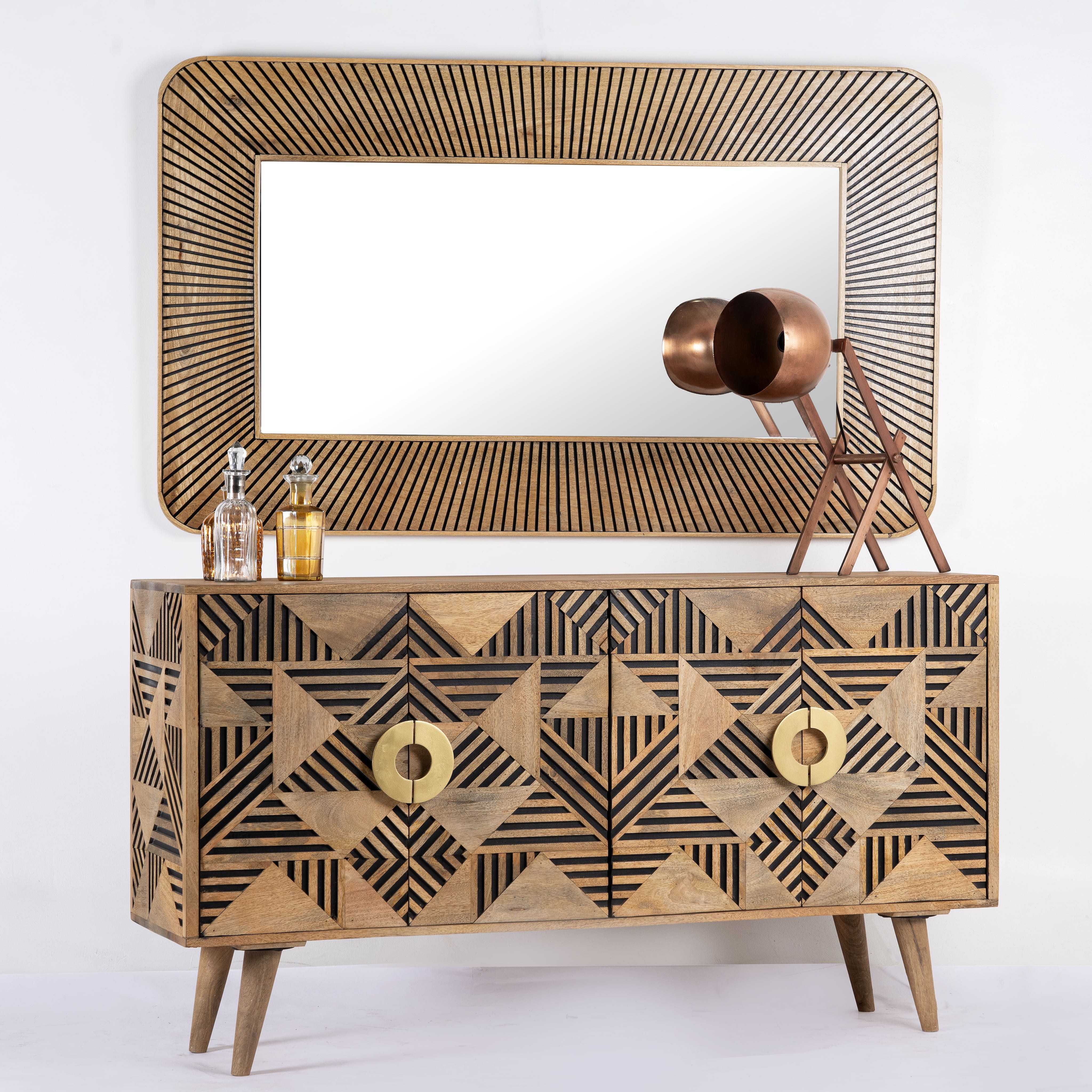 Mantram - Hand Crafted Mango Wood Sideboard Geometric Design 152cm