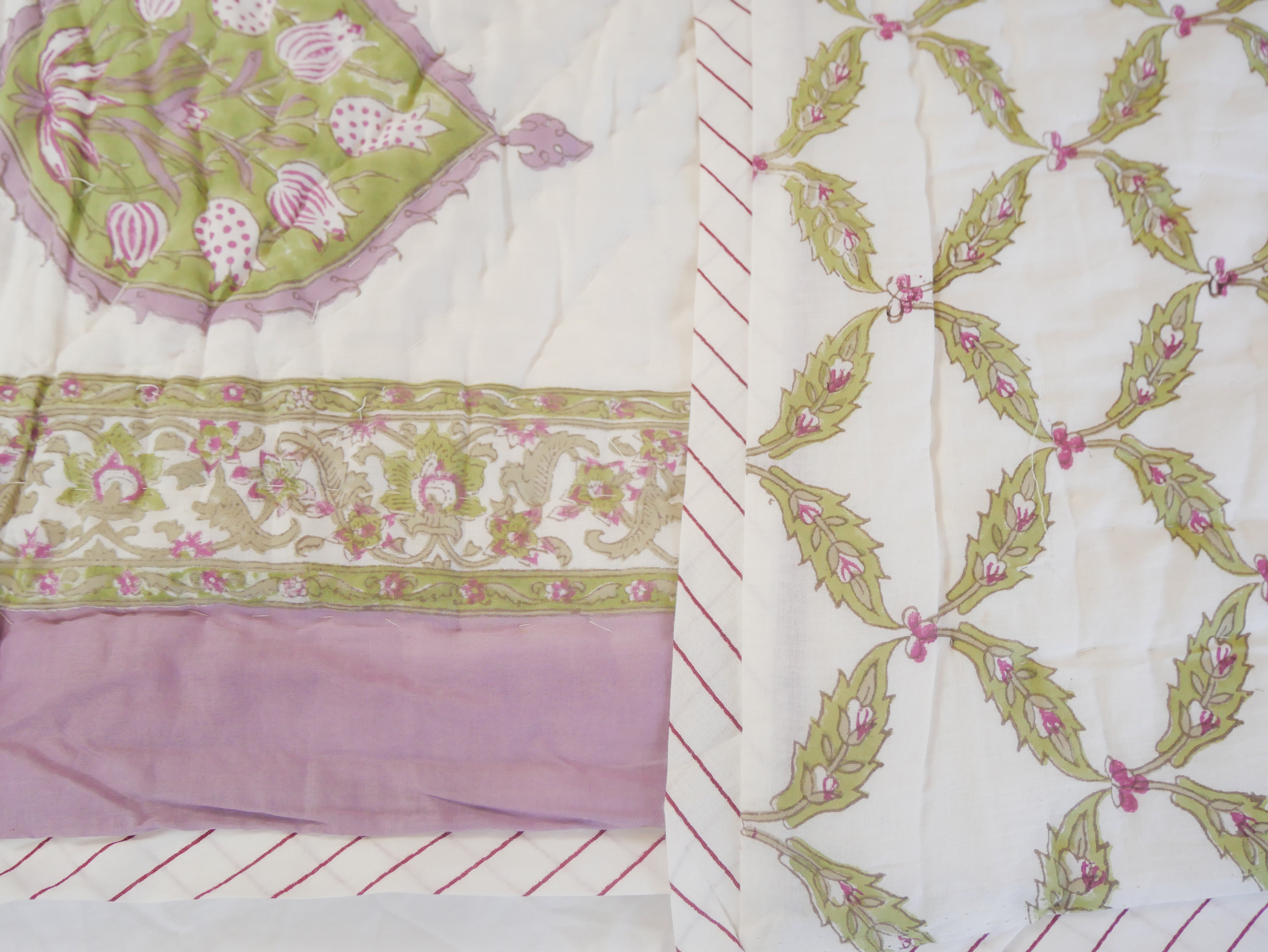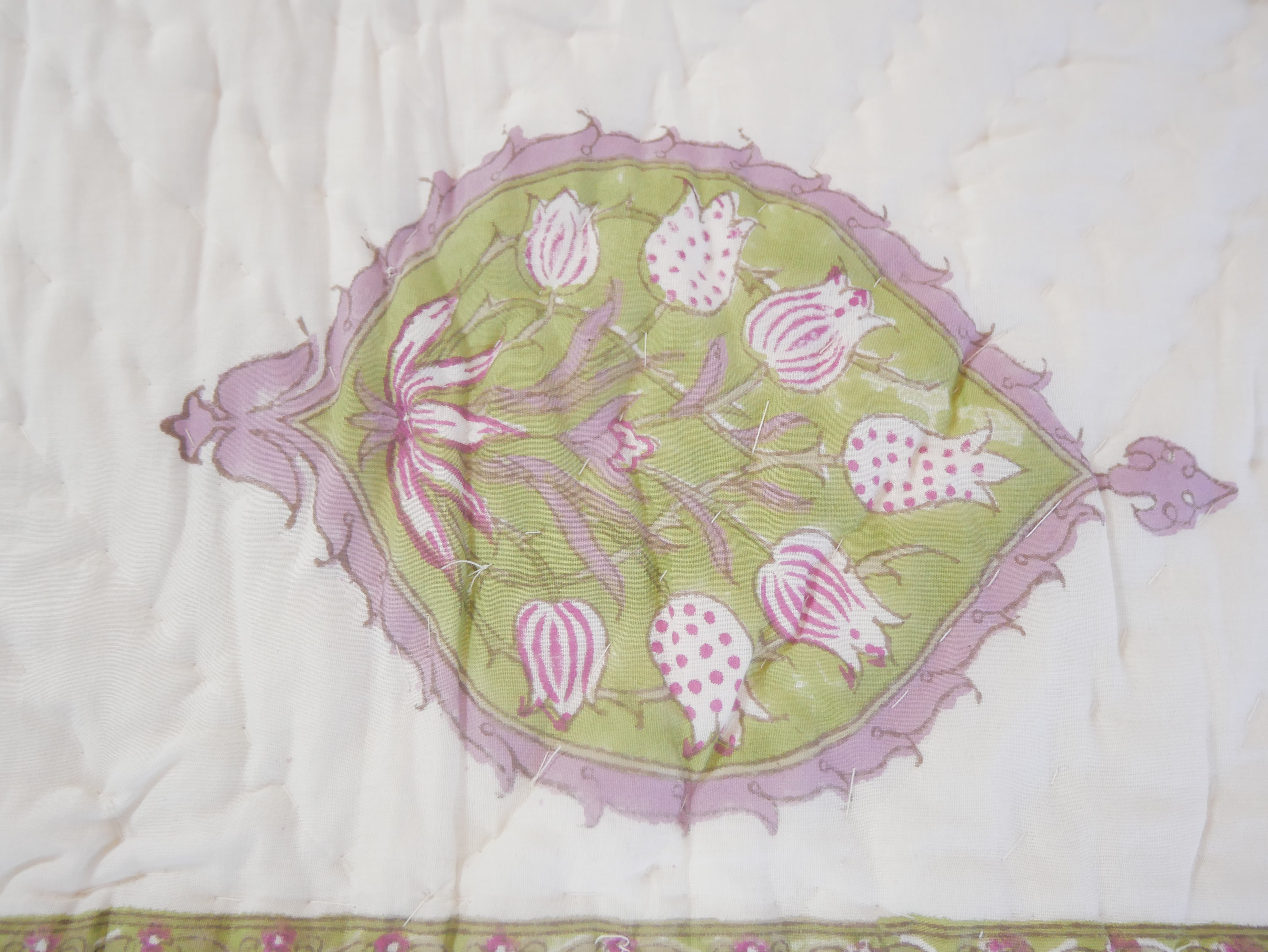 It is hand-sewn and features intricate hand made block prints from Rajasthan.