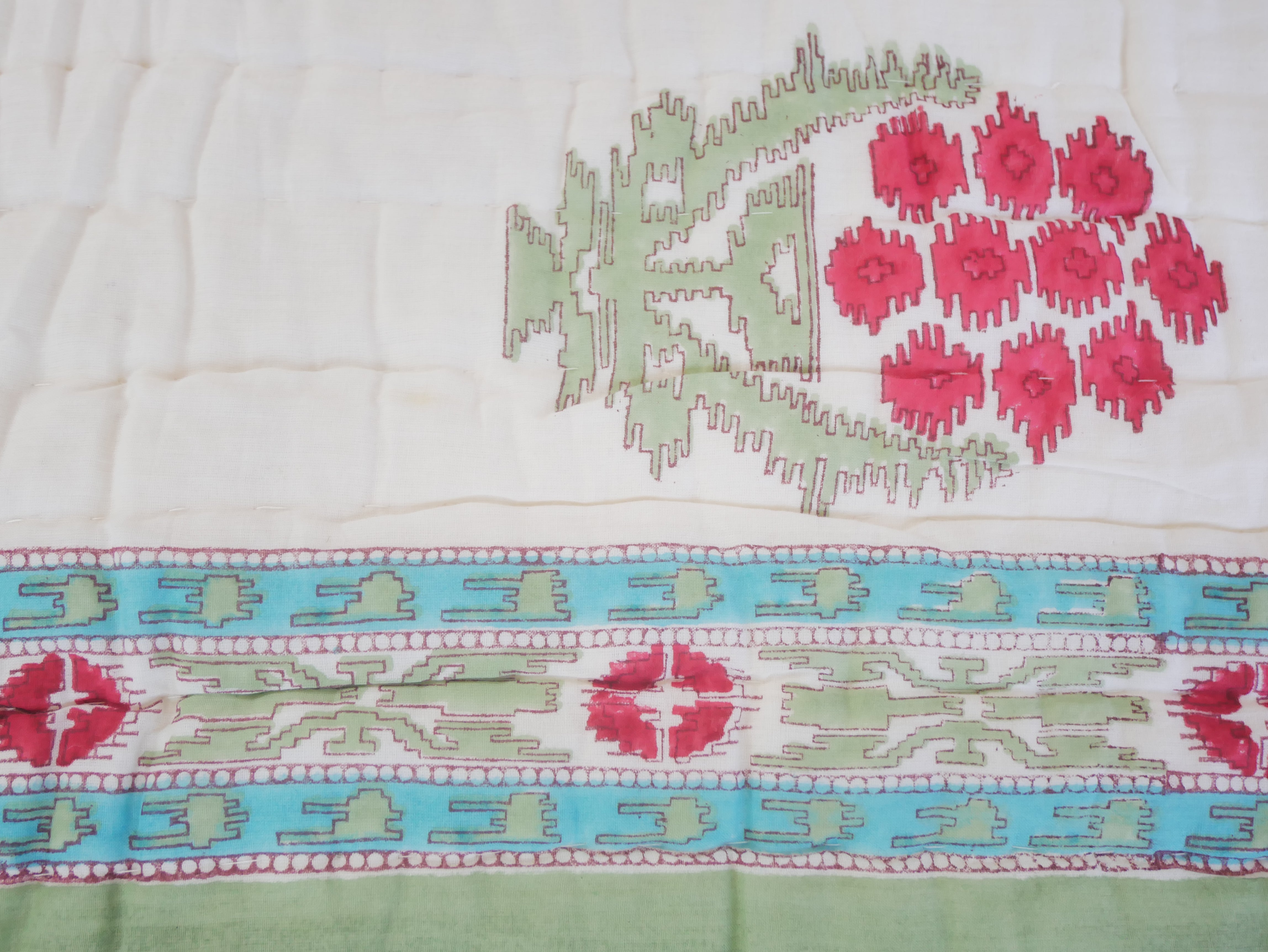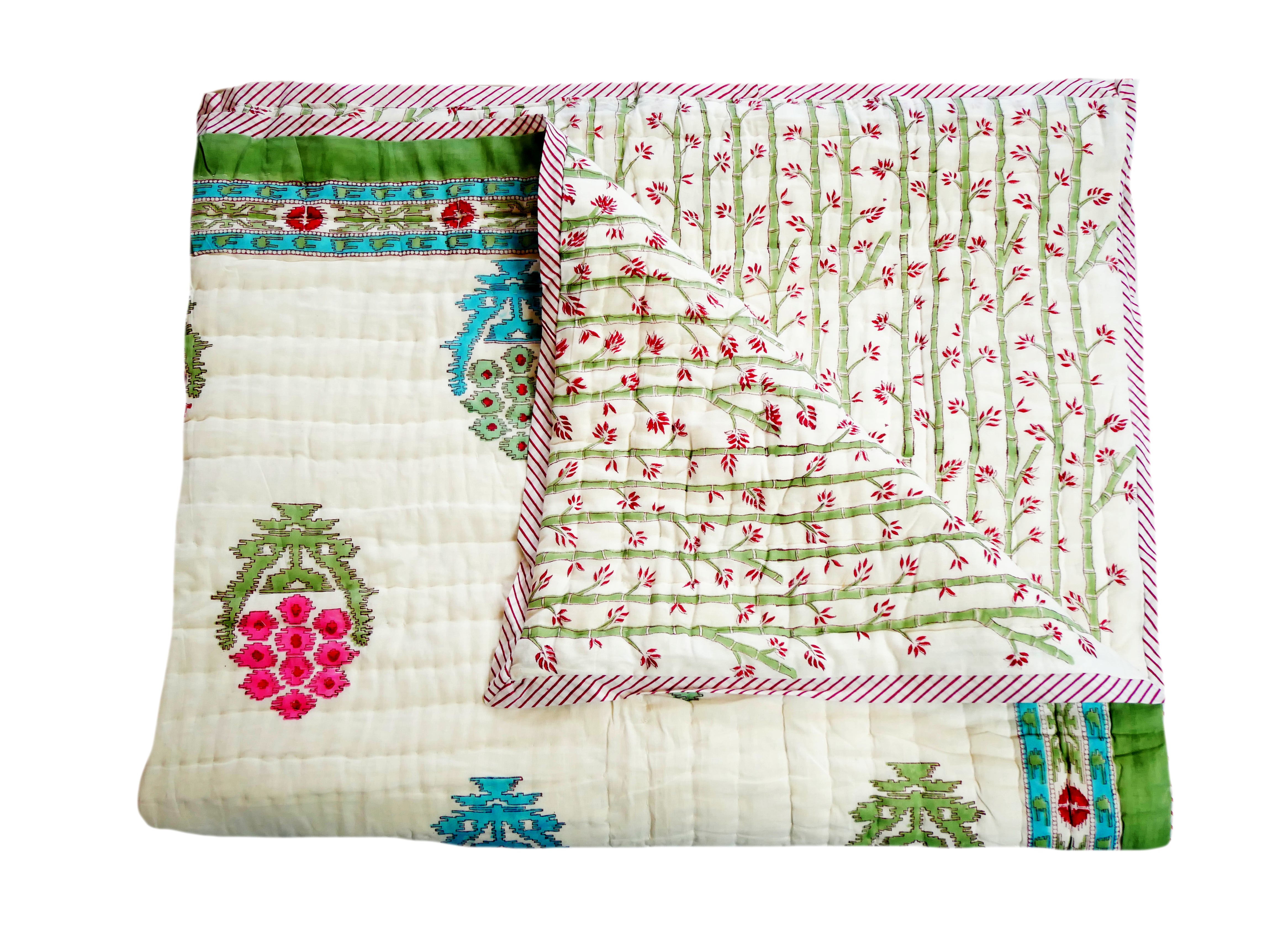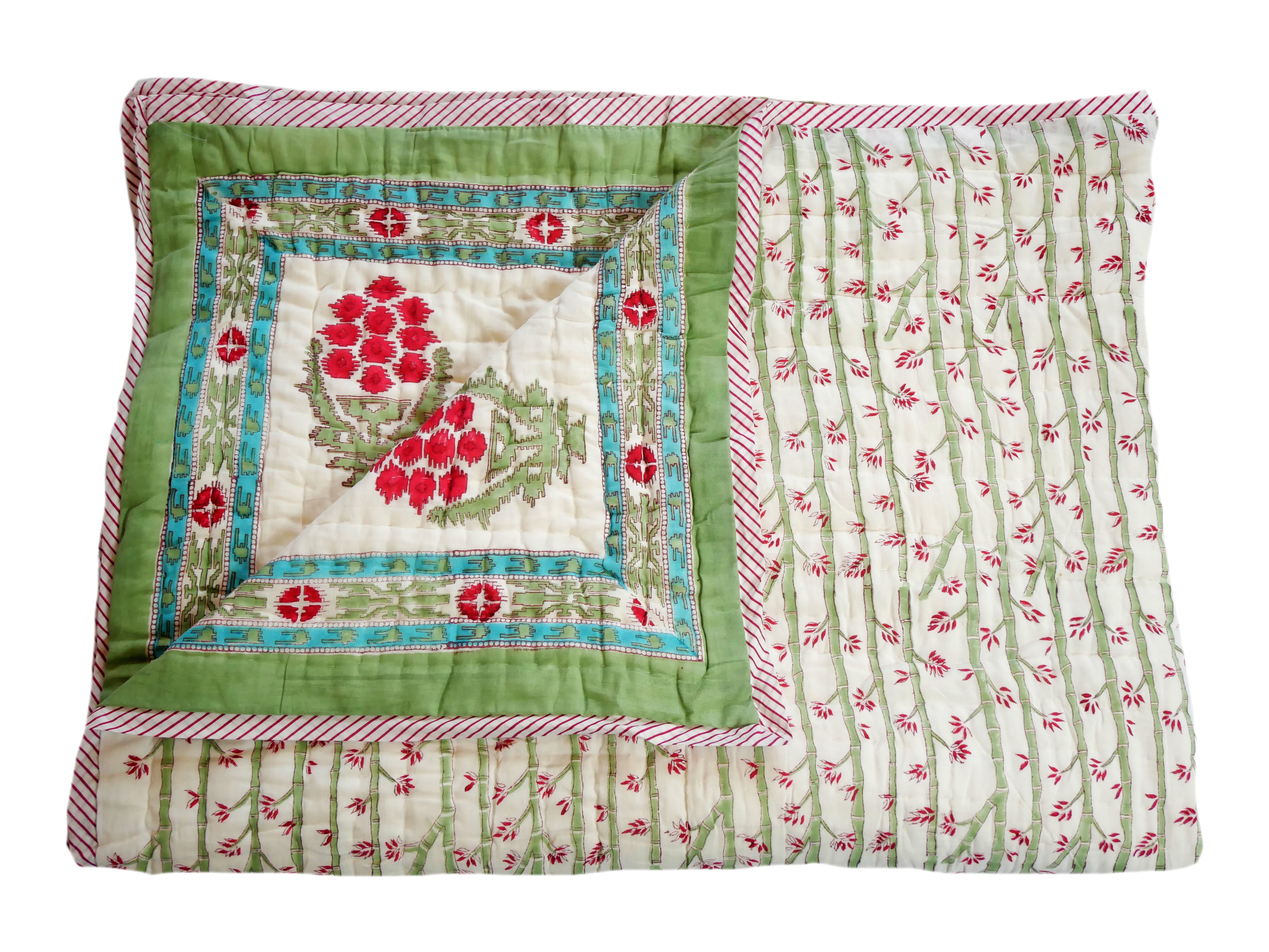 It is hand-sewn and features intricate hand made block prints from Rajasthan.