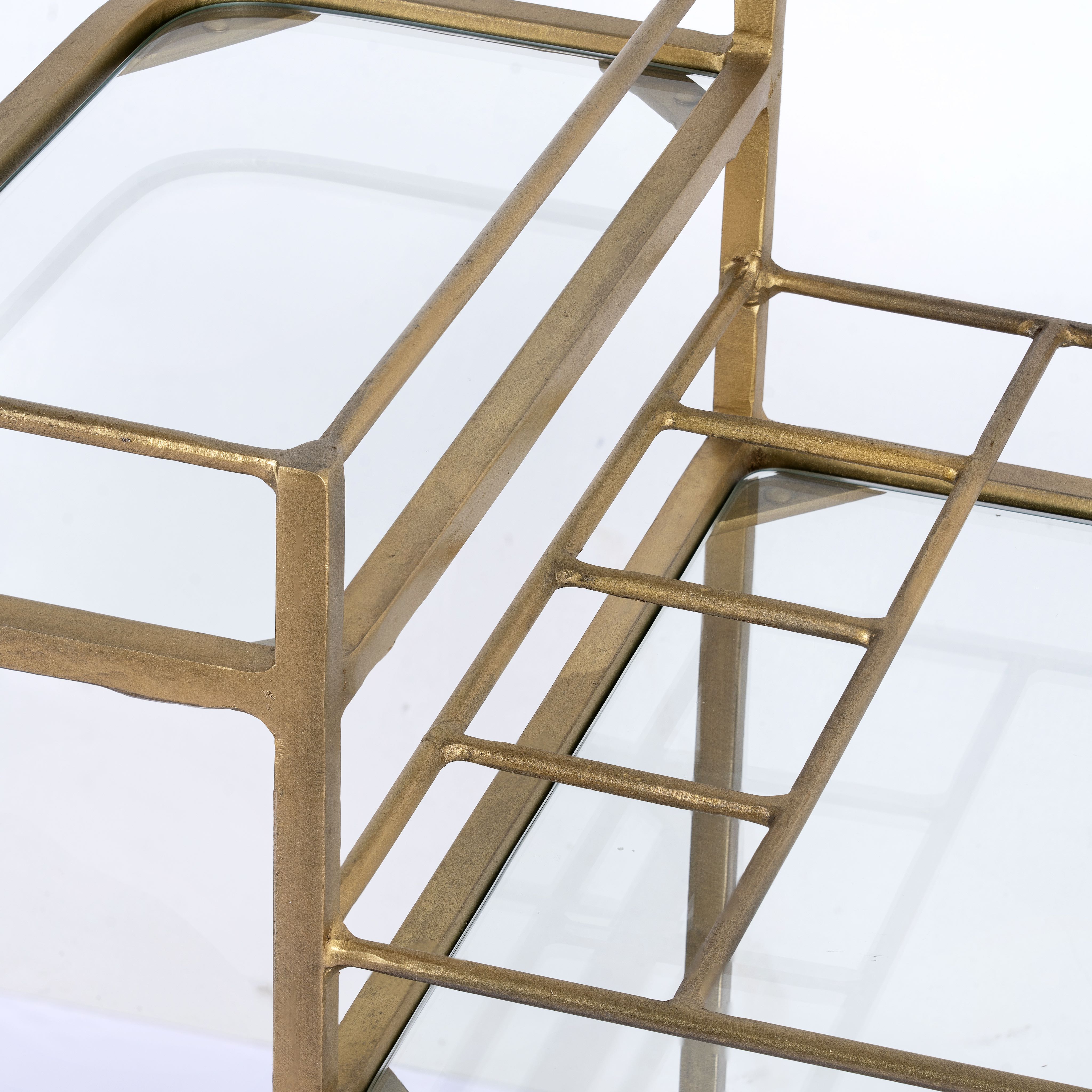 Bring a touch of luxury and style to your home with our serving trolley made of brass-coated iron, glass and mirror surfaces. Be convinced by the quality and functionality and enjoy relaxing moments in an attractive atmosphere.