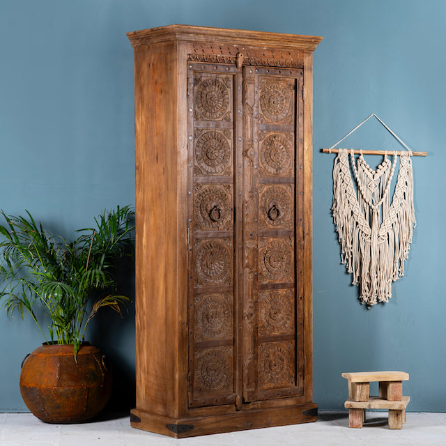 Palampur - Reclaimed Teak Door Cabinet Hand Carved 197cm
