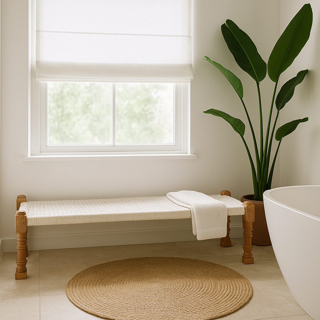 Inspired by traditional Indian design, Kolasib serves as more than just a bench or daybed. Whether used for lounging, reading, or as an inviting seat in your hallway or living room, this piece showcases the harmony between conscious materials and artisan skill. Its low-profile form makes it especially versatile, and its relaxed yet refined aesthetic fits effortlessly into rustic, boho, or modern interiors.