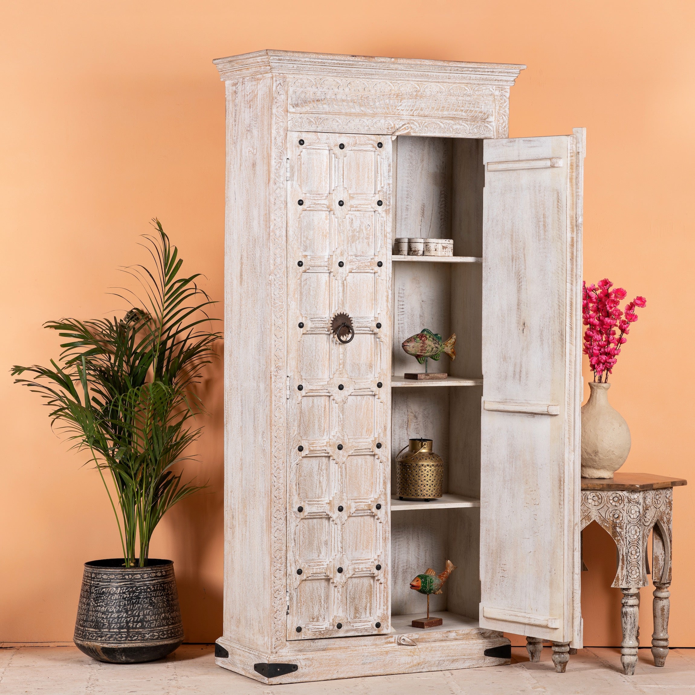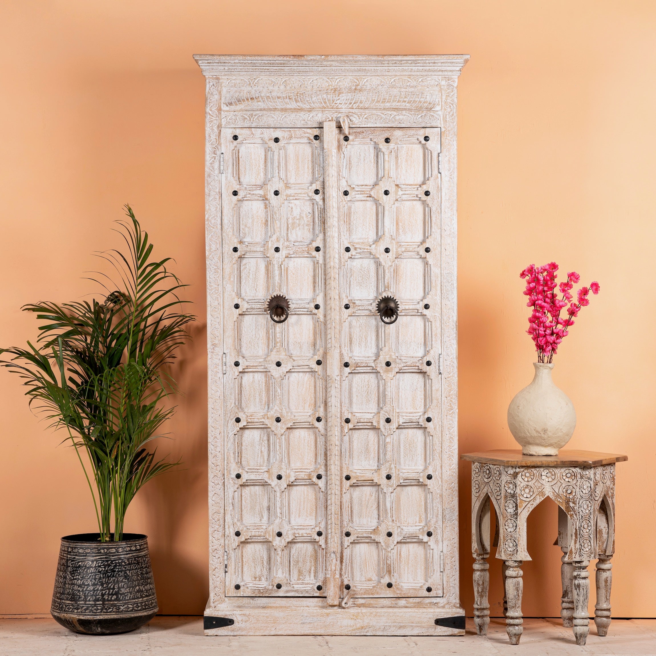 Elevate your interiors with this exquisite handcrafted cabinet, made from reclaimed wood and finished with a refined white-washed effect. Designed to blend timeless charm with practical storage, this piece is a true testament to skilled craftsmanship.