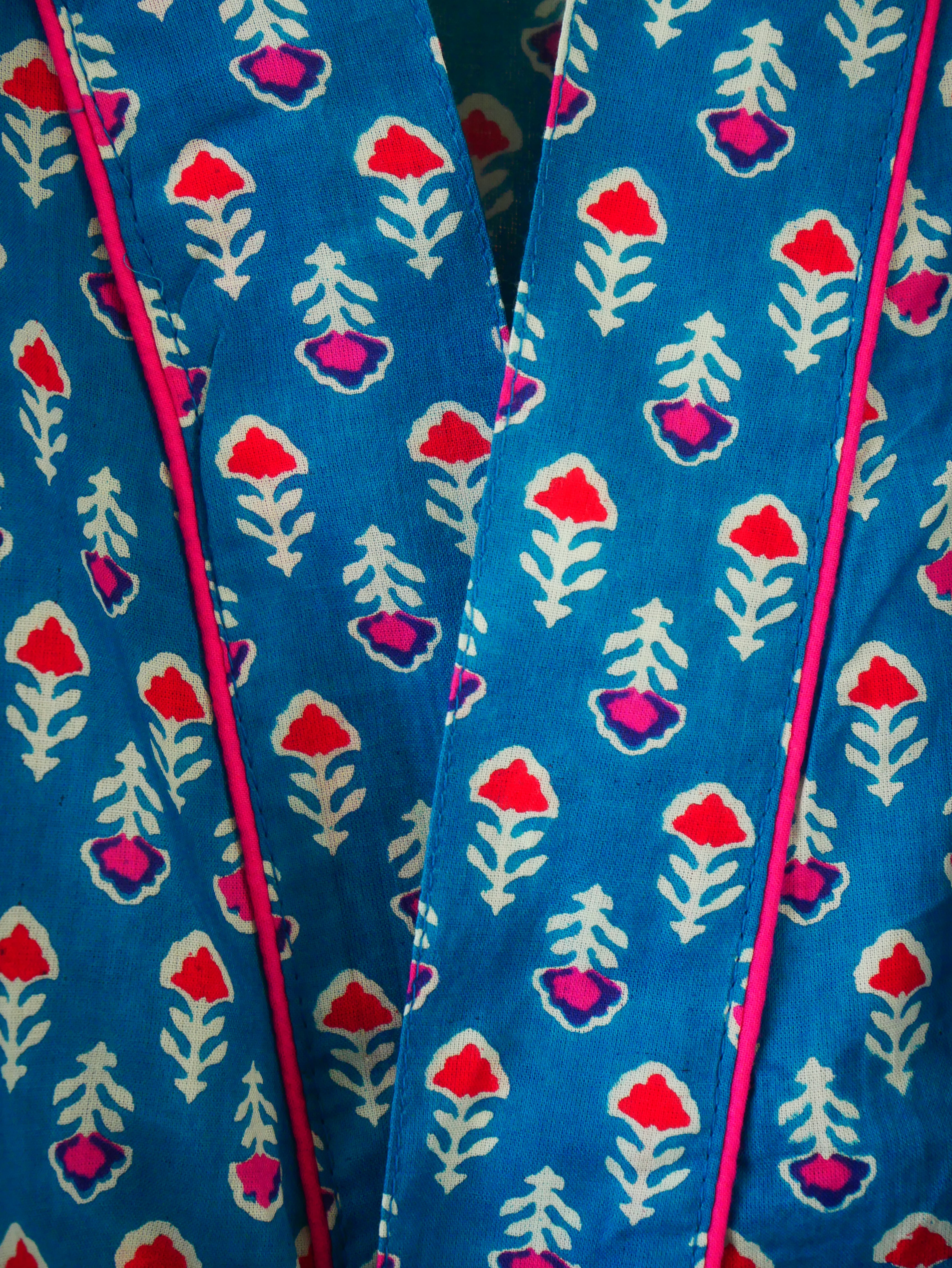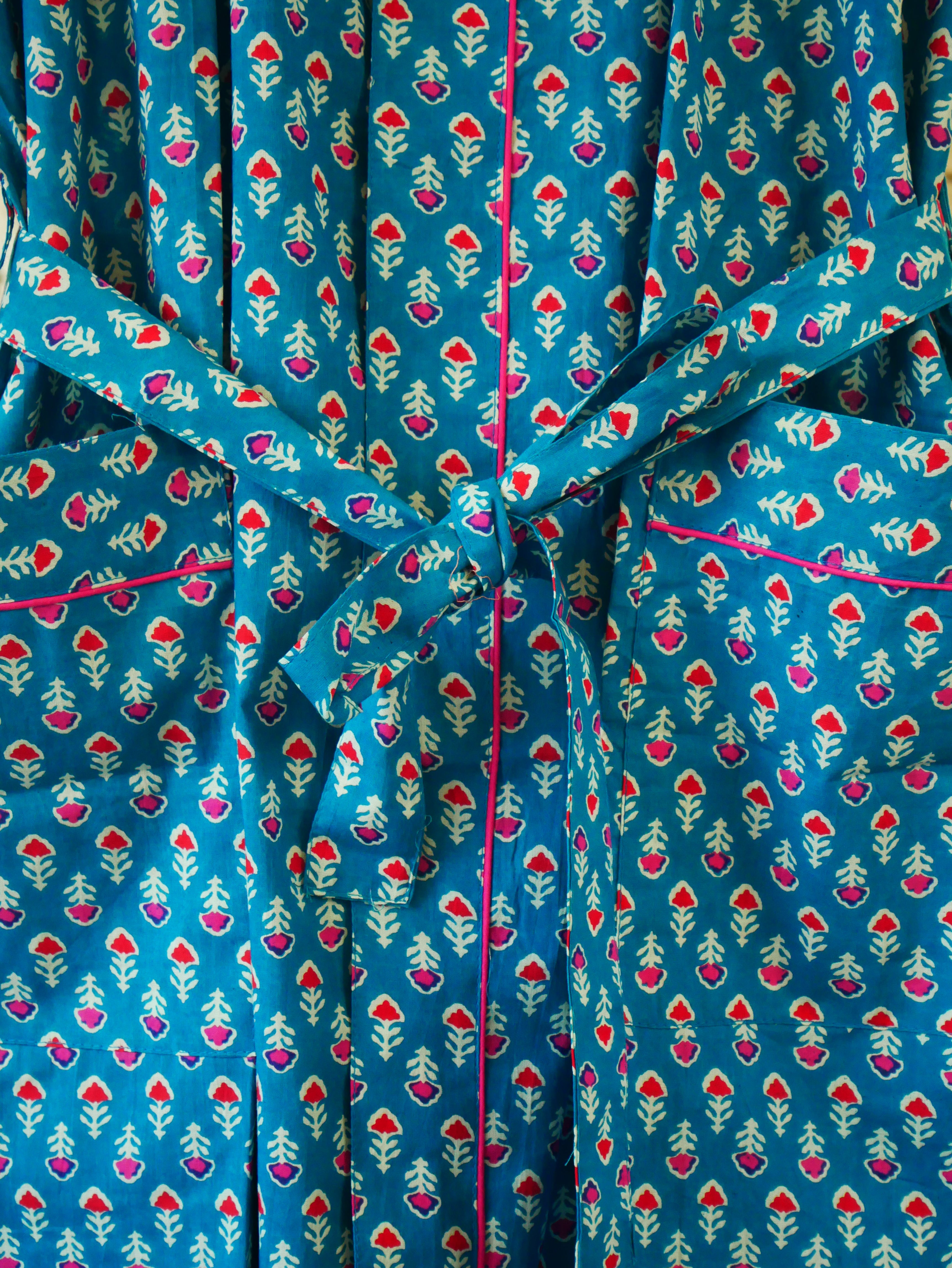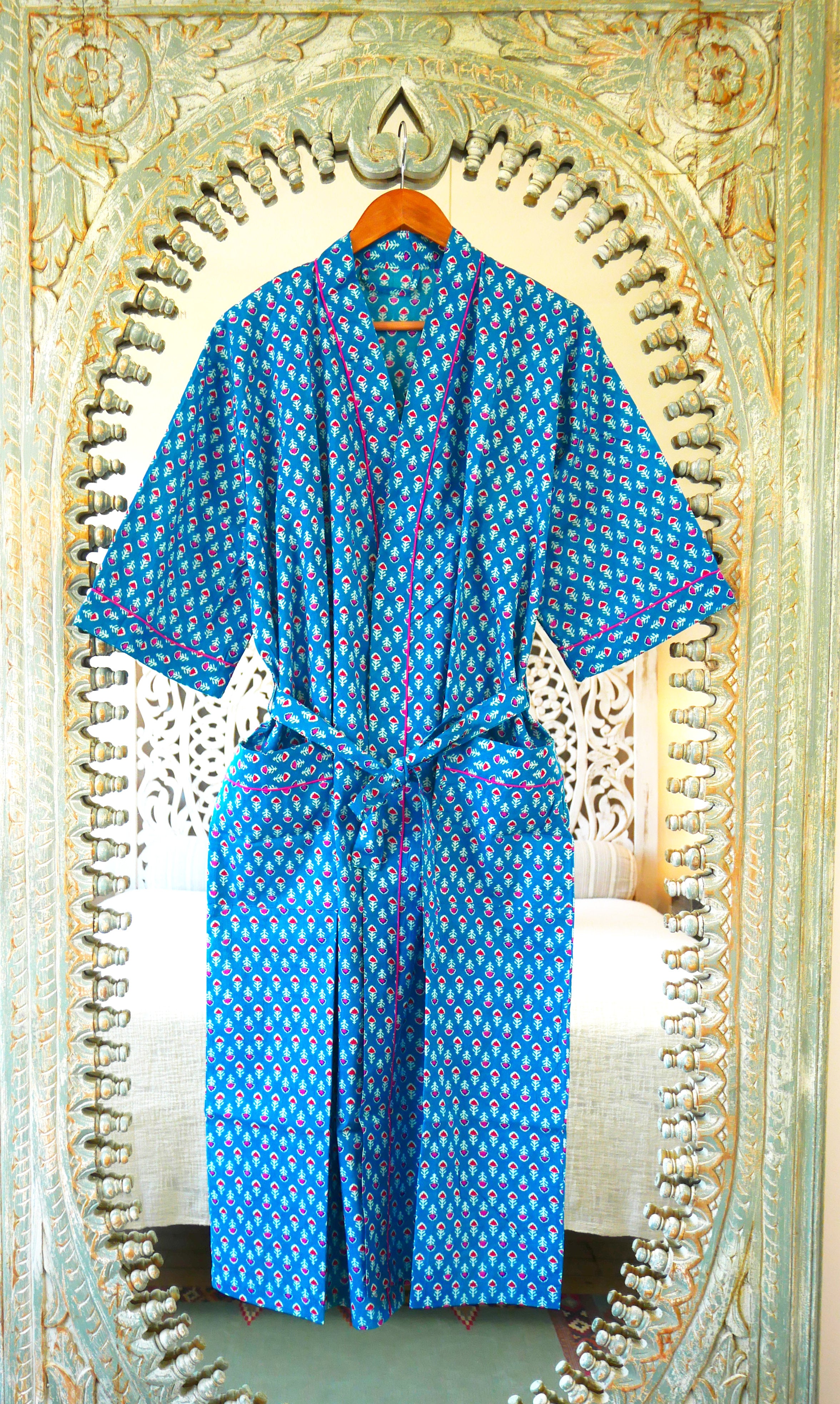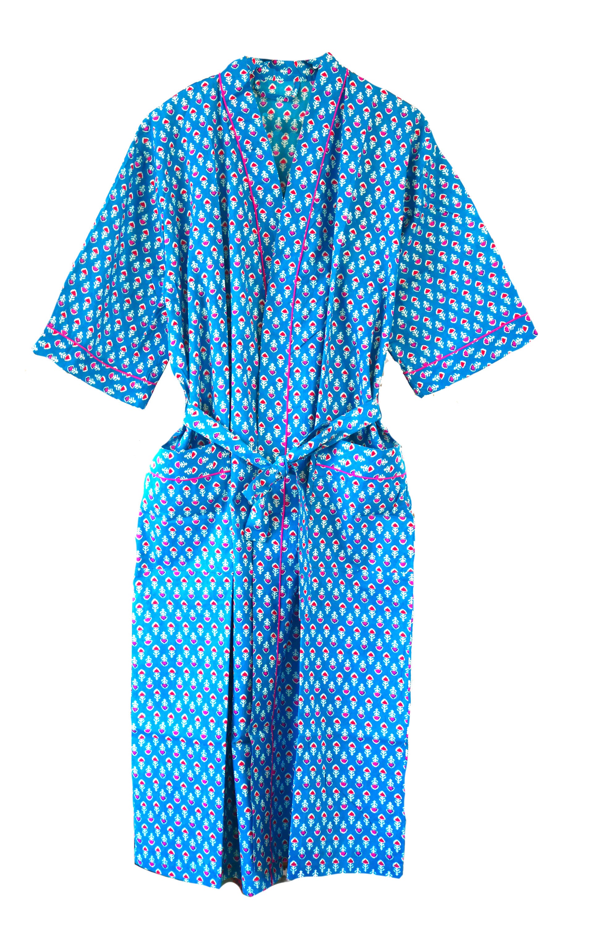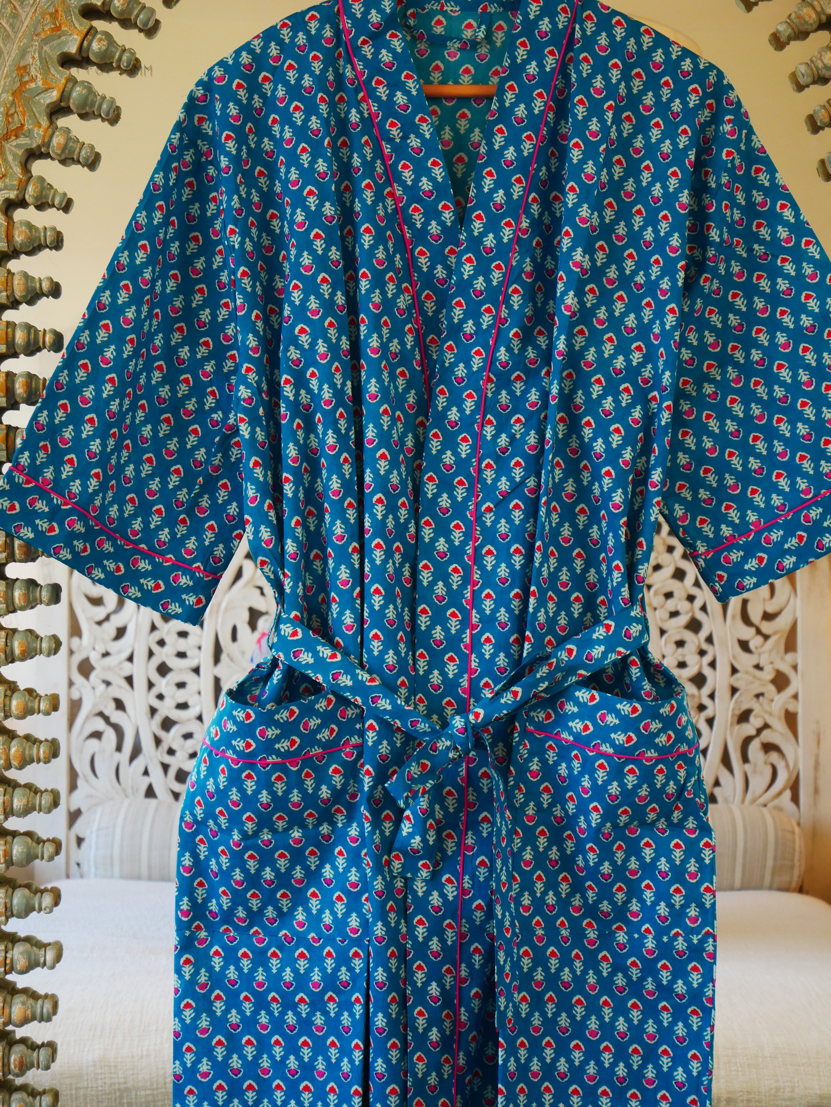 Wrap yourself in the vibrant beauty of our morning robes, sourced directly from India and crafted from 100% cotton. Each robe boasts a variety of colors and designs, blending traditional Rajasthani patterns with modern floral motifs. These robes are not just a testament to exceptional craftsmanship but also a celebration of cultural heritage and contemporary style. Ideal for lounging or adding an exotic touch to your morning routine, our robes promise comfort and elegance in every thread.