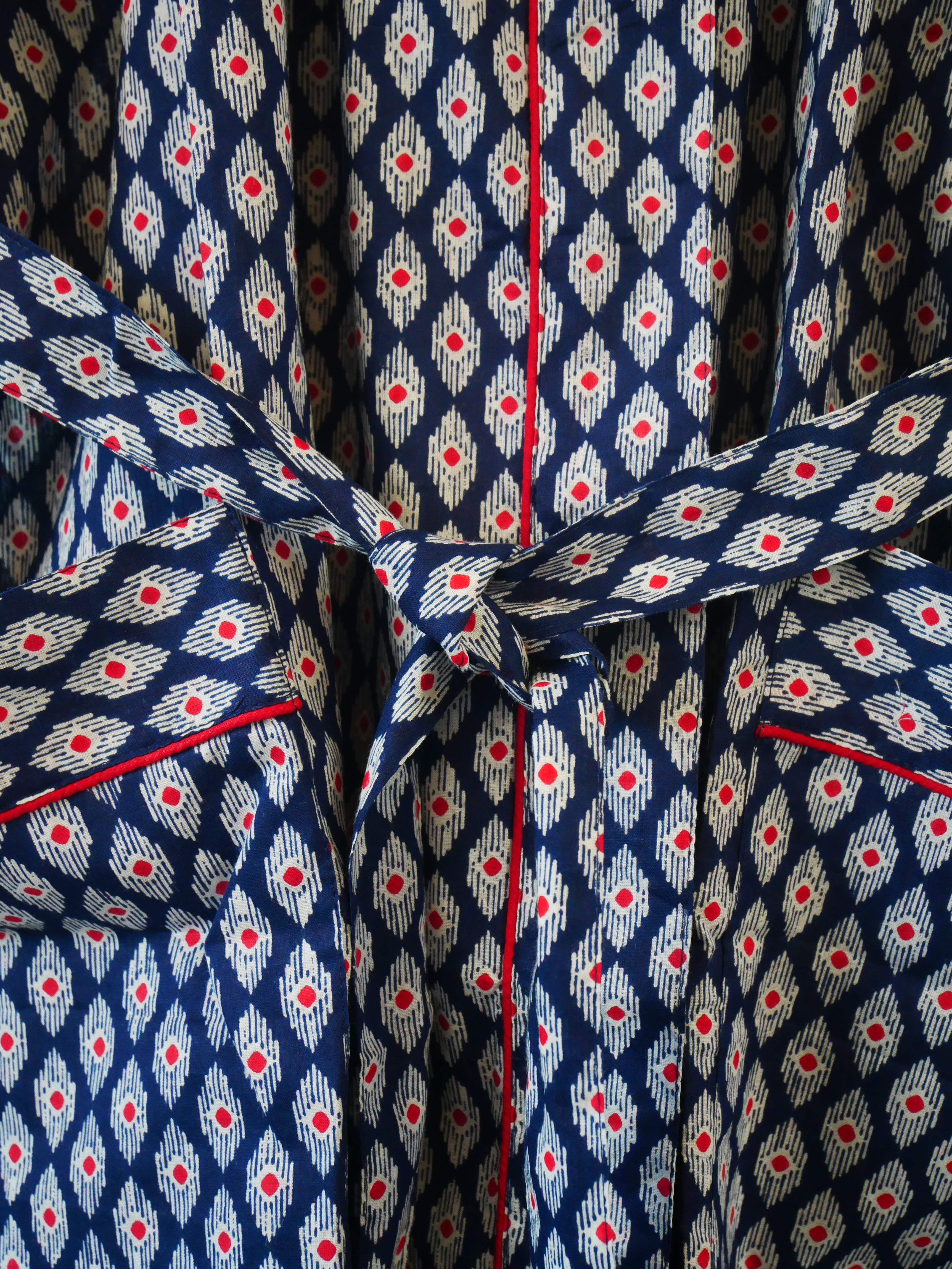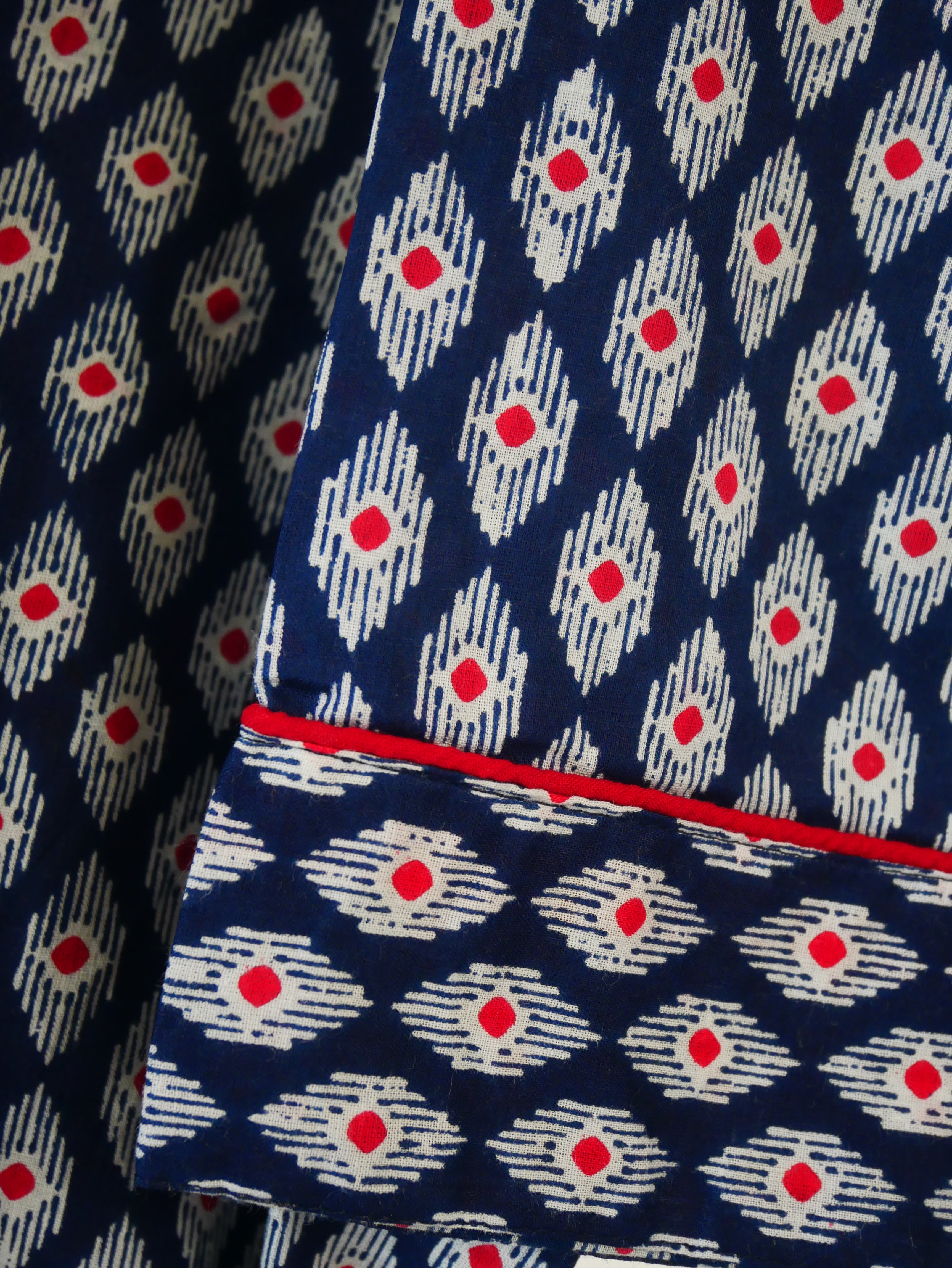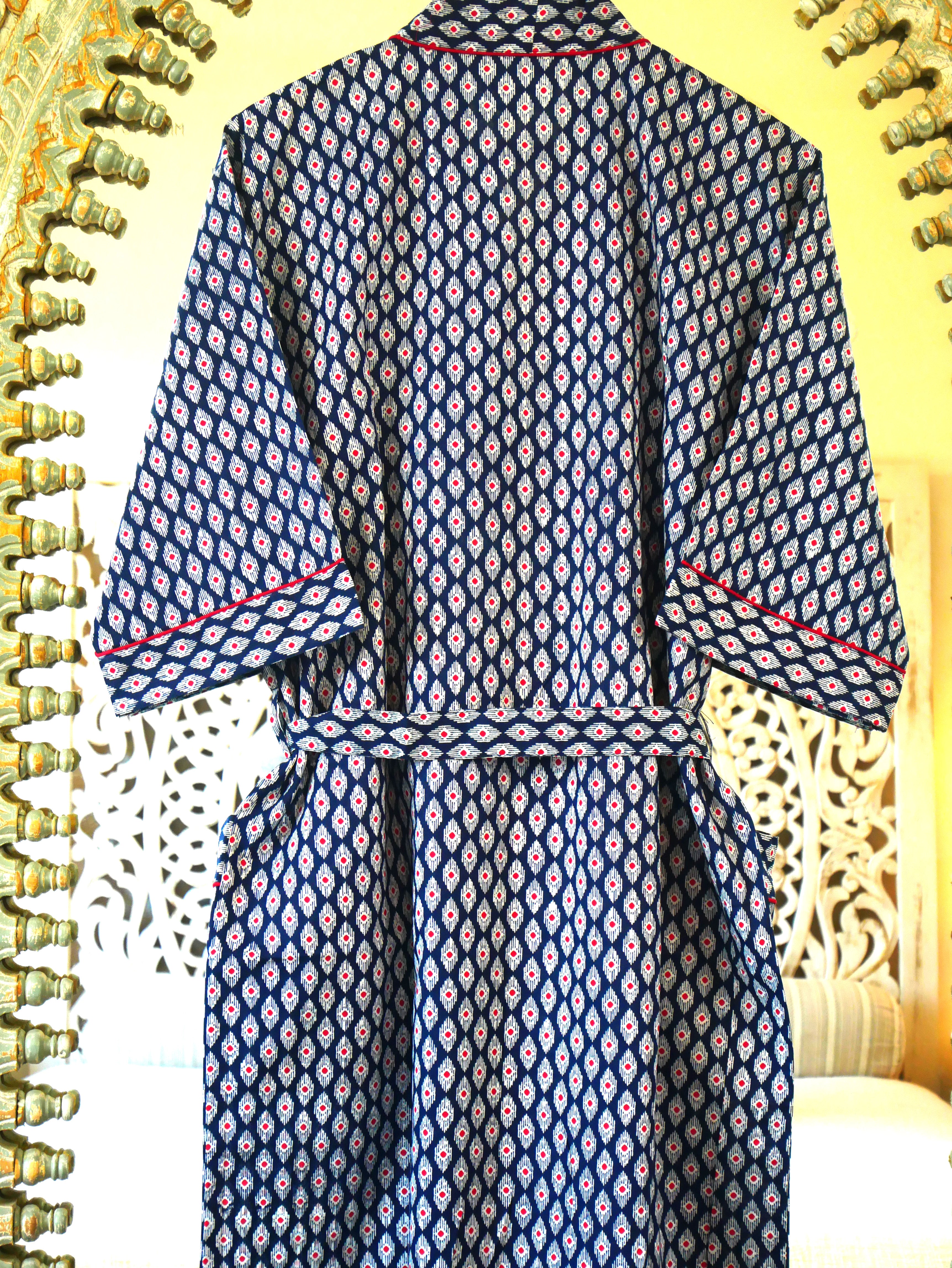 Wrap yourself in the vibrant beauty of our morning robes, sourced directly from India and crafted from 100% cotton. Each robe boasts a variety of colors and designs, blending traditional Rajasthani patterns with modern floral motifs. These robes are not just a testament to exceptional craftsmanship but also a celebration of cultural heritage and contemporary style. Ideal for lounging or adding an exotic touch to your morning routine, our robes promise comfort and elegance in every thread.