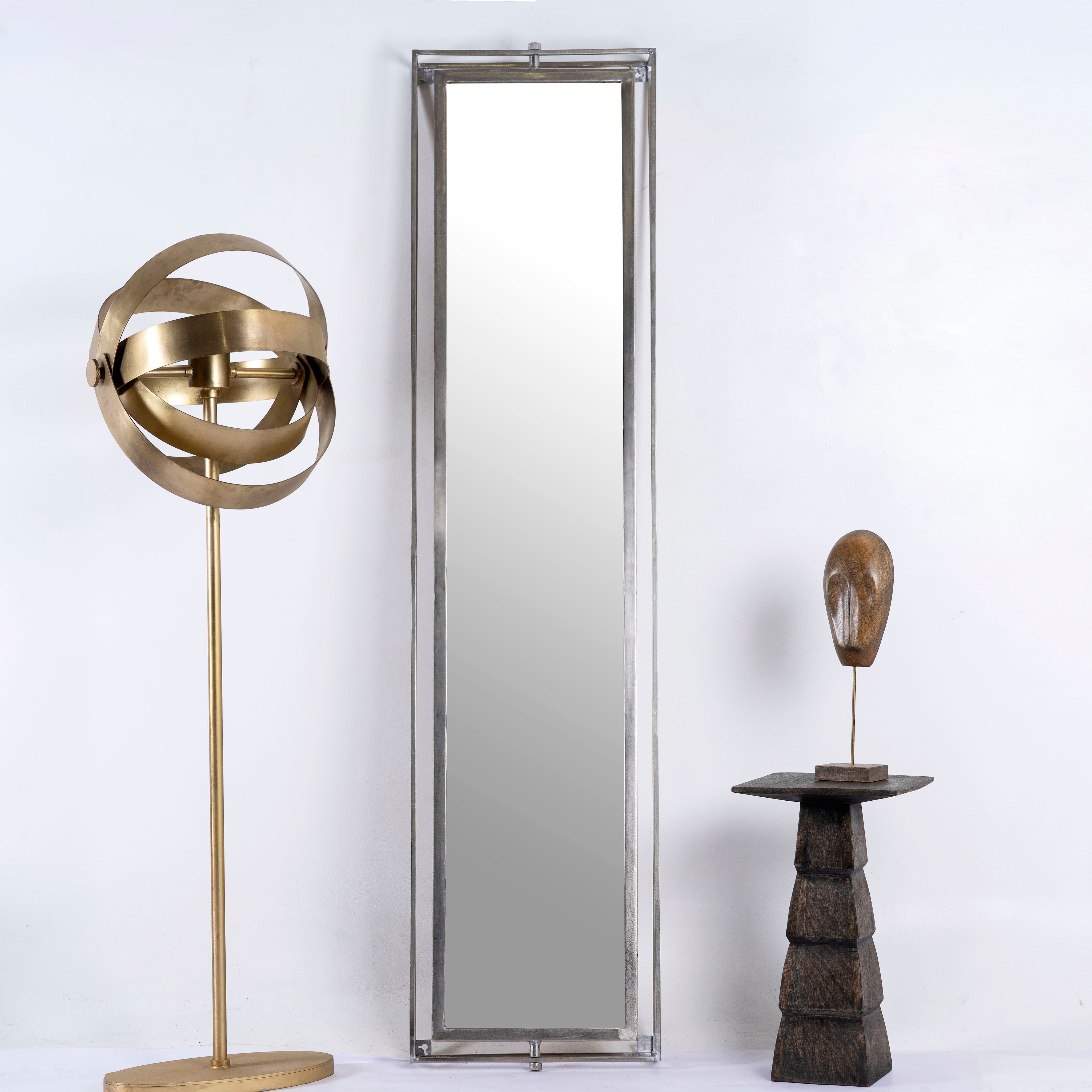 Introducing our sleek and contemporary iron tall design mirror Durjaya, a perfect fusion of form and function. This elegant mirror features a tall, streamlined design that adds a touch of modern sophistication to any space. The frame is crafted from high-quality stainless steel, ensuring durability and a pristine finish that enhances its stylish appeal.