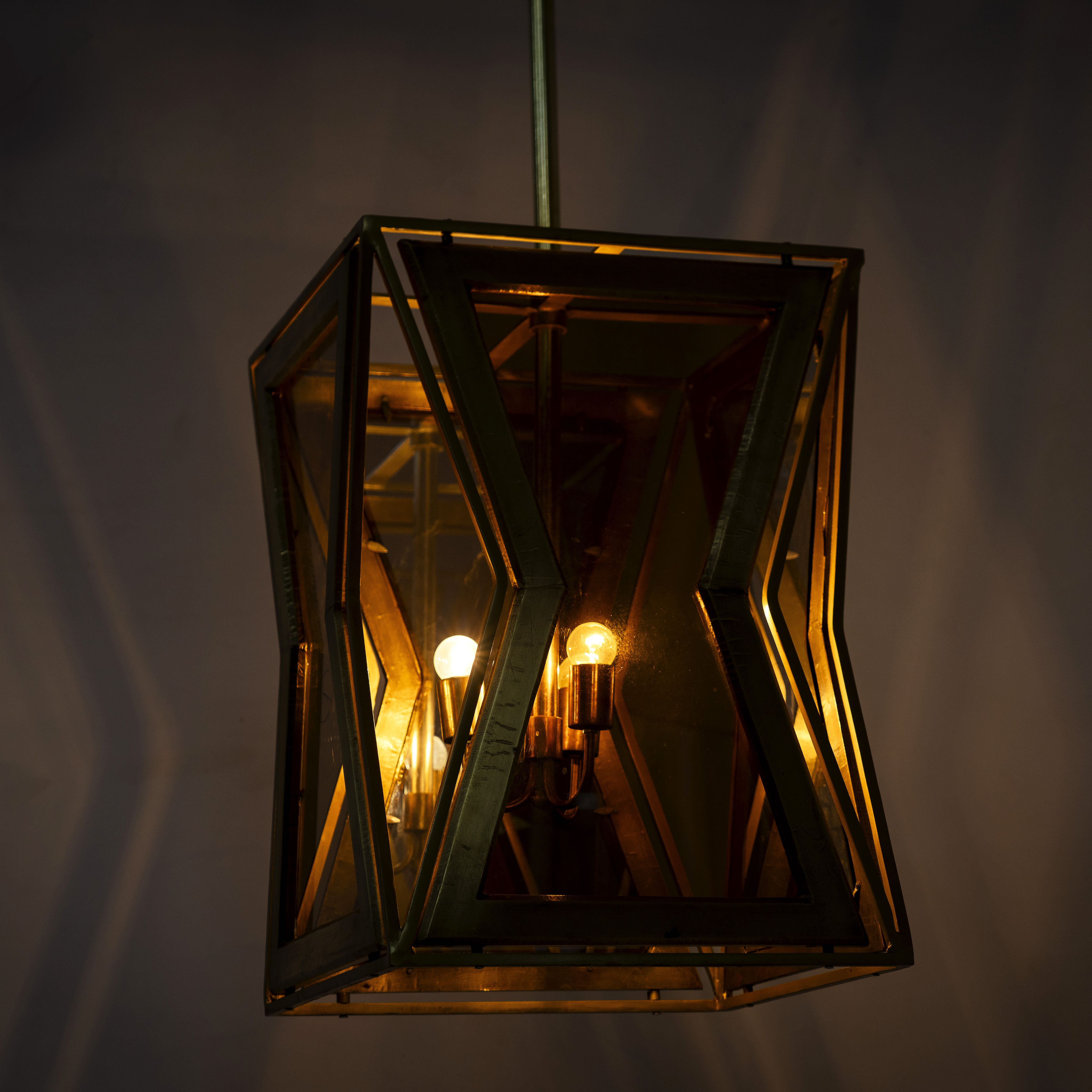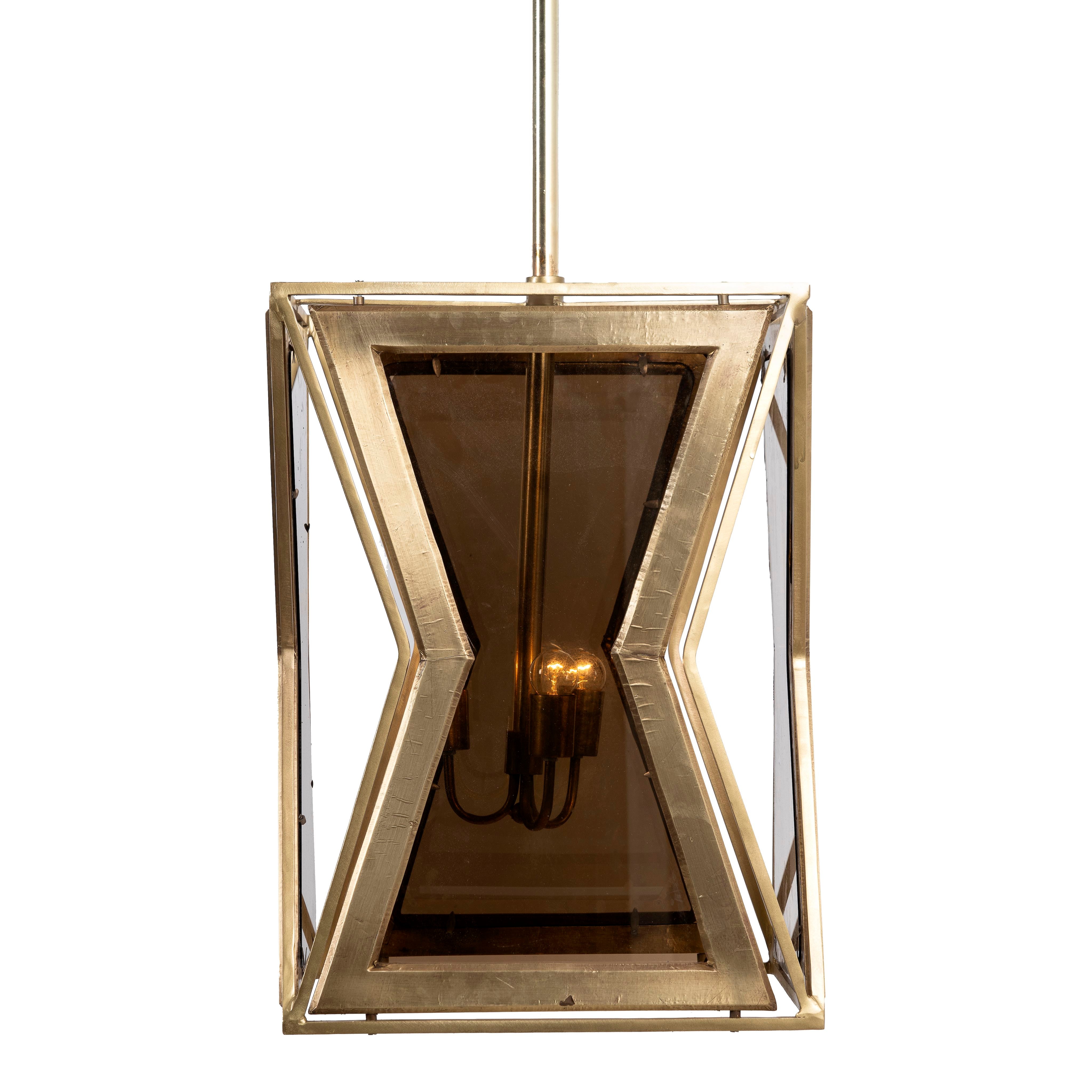 Expertly crafted from premium wood, Deetya’s tapered silhouette highlights natural textures and is richly adorned with brass cladding for a refined, luxurious finish. Tinted glass panels soften the light within, casting a warm and calming glow that brings serenity to any room.