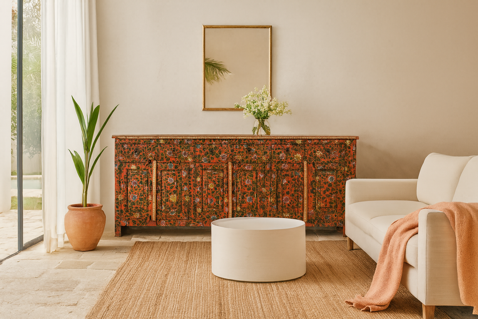 With spacious drawers and cabinets, Vanur offers generous storage while acting as a stunning focal point in any room. Whether styled in a dining area, living room, or entryway, it brings color, culture, and sustainability into your space.
